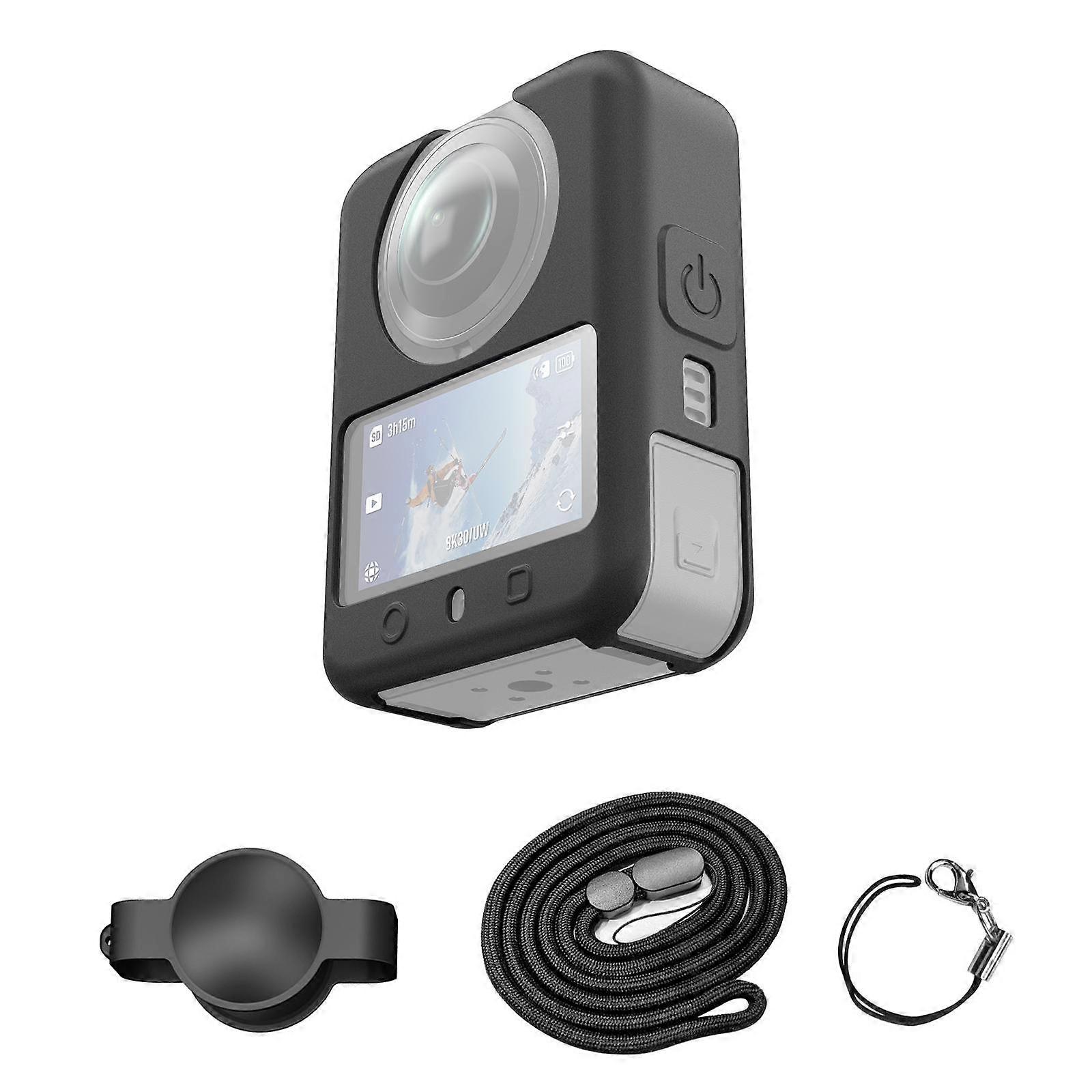 【New】 For DJI Osmo 360 PULUZ Silicone Protective Cover with Lens Cover & Lanyard (Black)