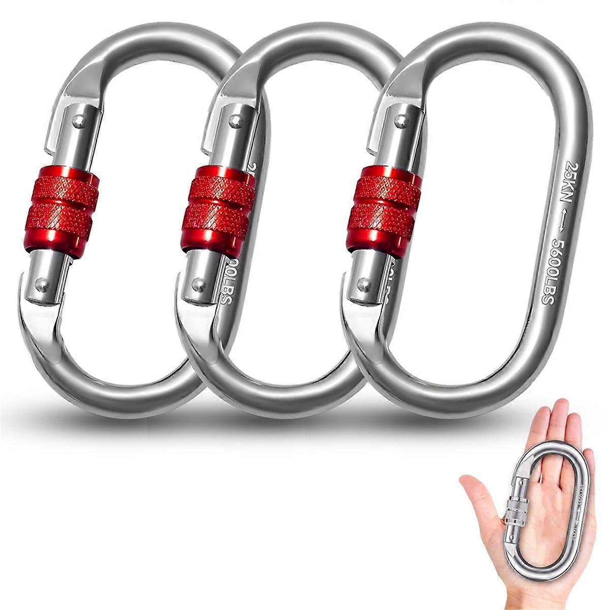 3 Pcs Carabiner Hooks,Large 25 KN, Heavy Duty Safety Carabiner, Stainless Steel, for Climbing, Abseiling, Hammocks, Dog