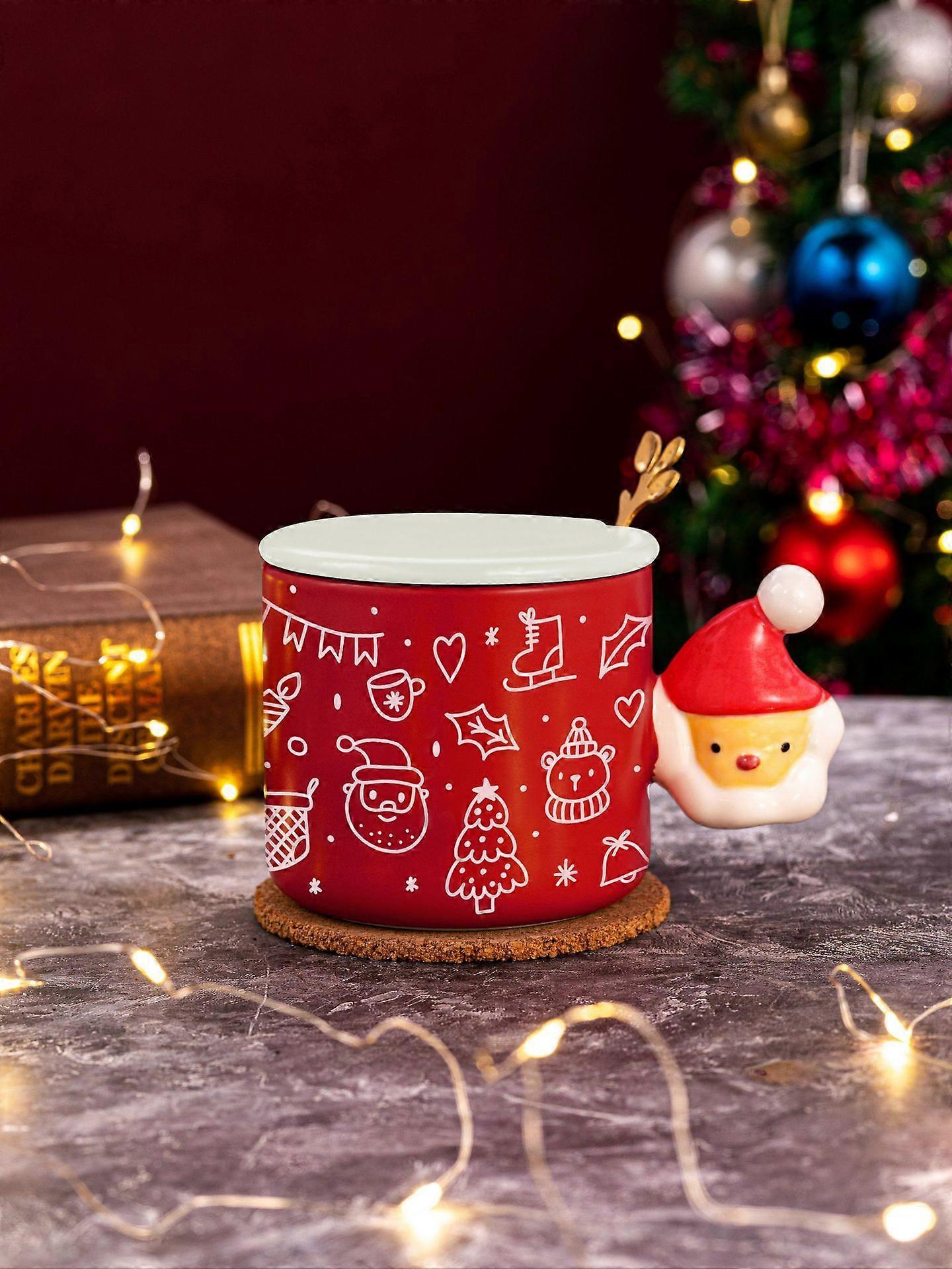 Creative Christmas Party Doodle Mug with Lid Large Capacity Ceramic Cup Couple Mug Gift