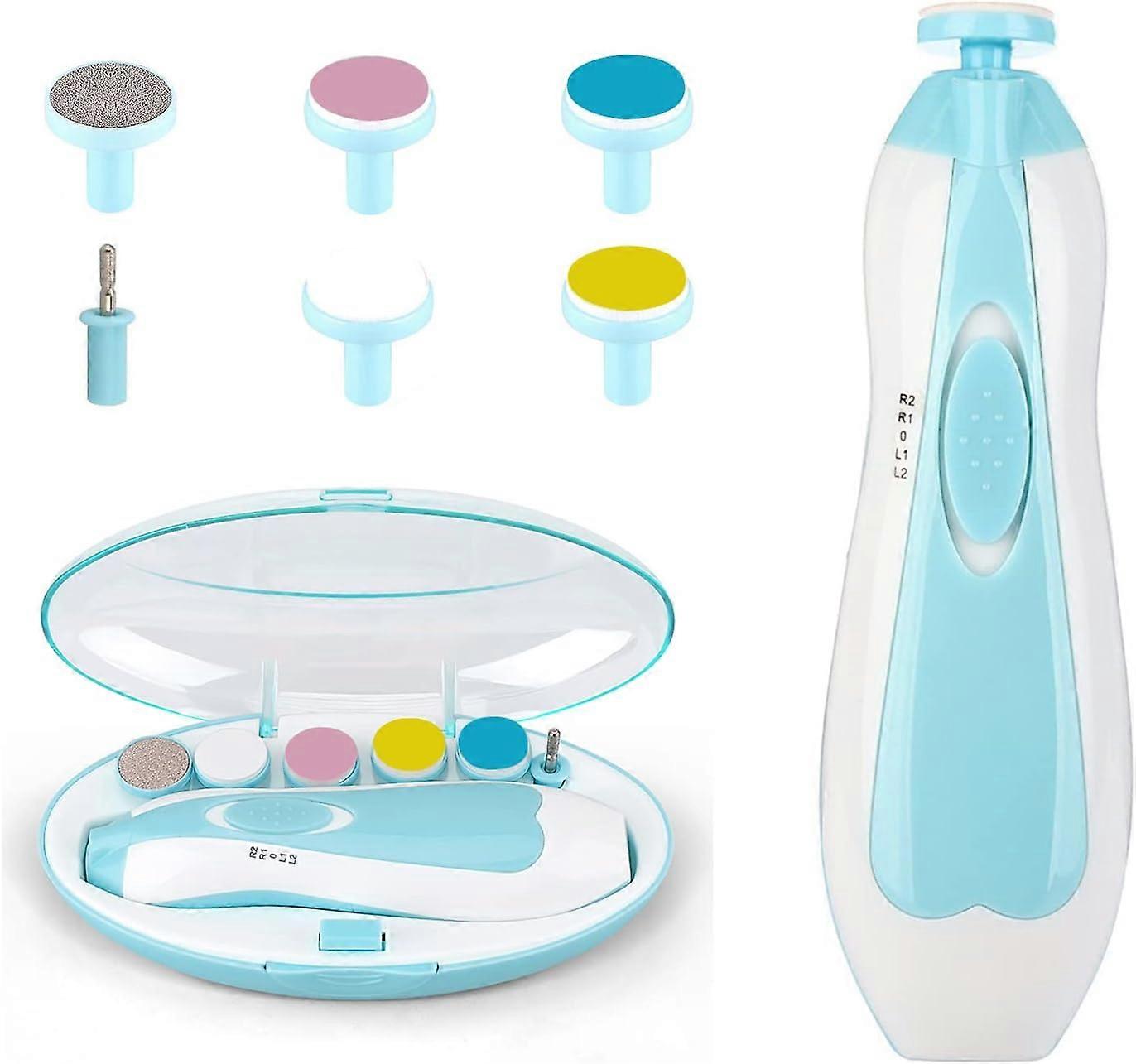 Baby Nail File Clippers Electric: Baby Nail Trimmer Electric Kit Fingernails Toes Care Manicure 6-in-1 Set with LED Light Safe for Newborn Kids and Ad