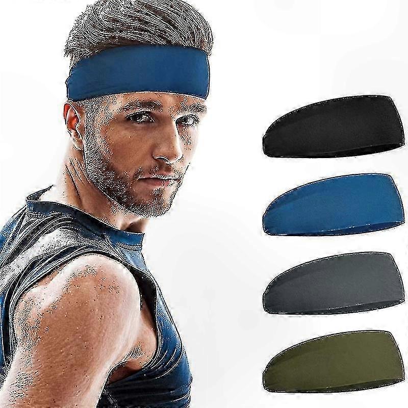 Sweat-Wicking Stretch Headbands for Men - 4 Pack for Running, Yoga, Cycling, and Basketball Workouts