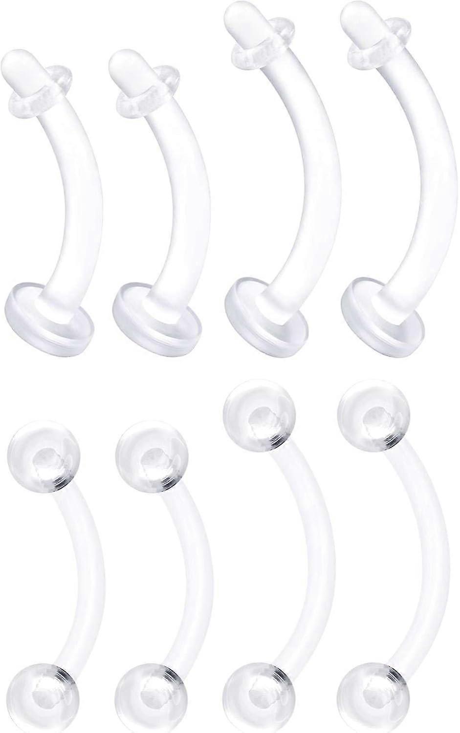 Bioplastic Clear Curved Barbell Retainer 16 Gauge Ball Tragus Lobe Rim Earrings Eyebrow Piercing Jewelry See More Sizes A-8pcs 8mm 10mm bar