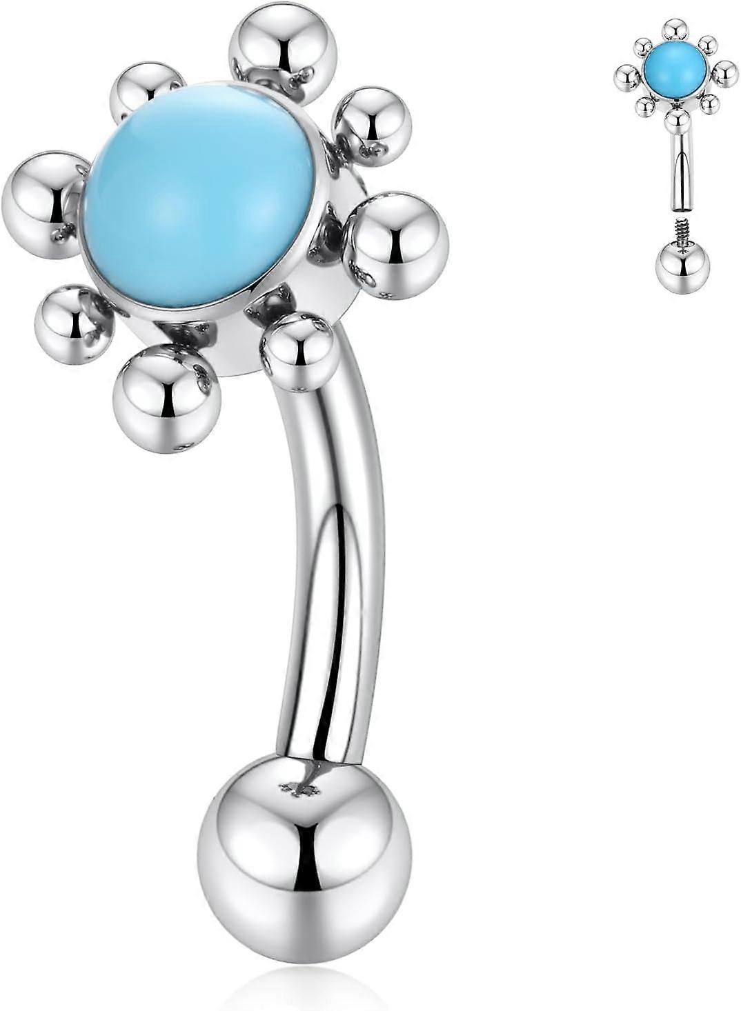G23 Titanium Belly Button Ring 14G Belly Piercing Jewelry Belly Barbell Navel Ring Navel Barbell Stud 8mm 10mm 12mm Style2:Silver with Turquoise