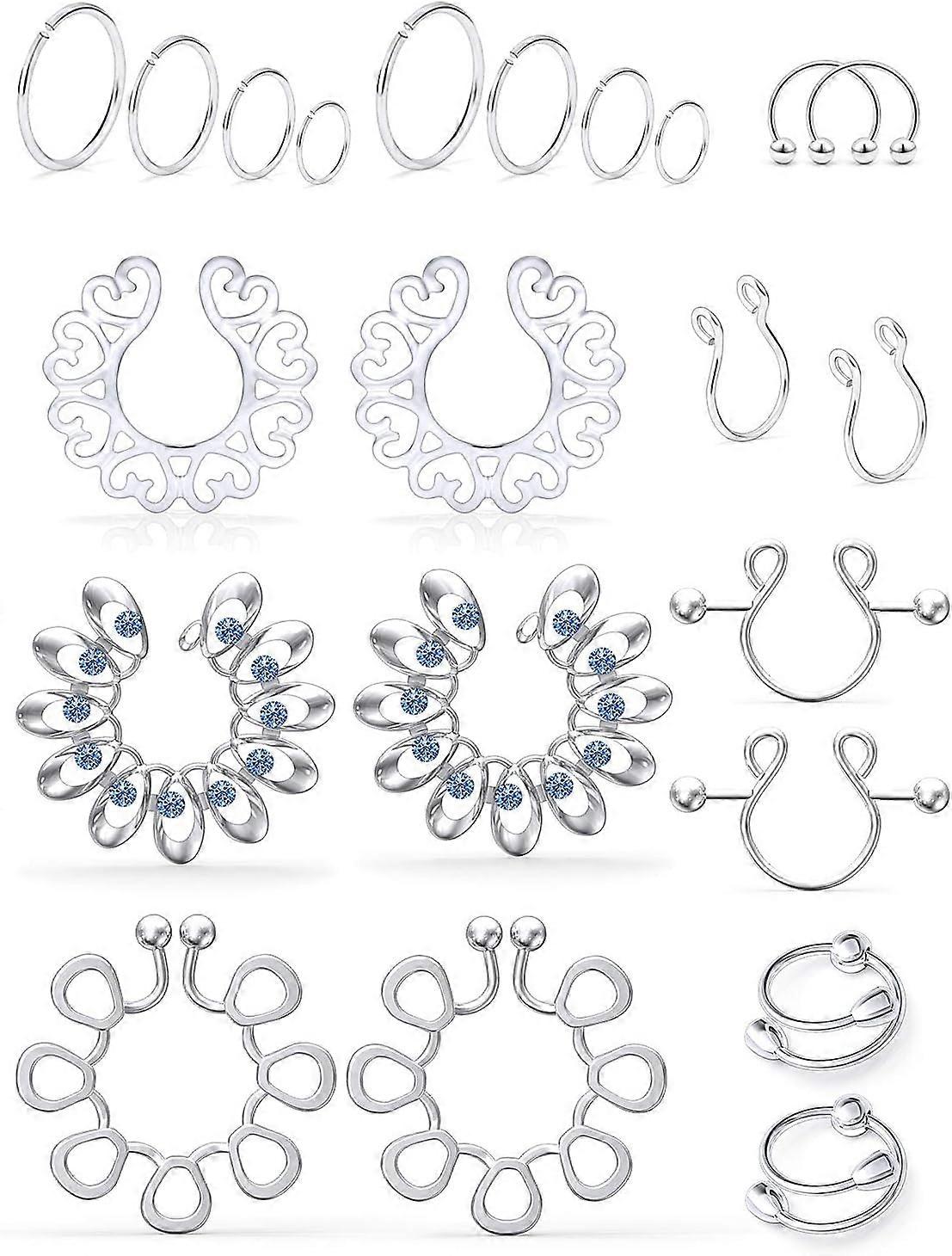 Fake Nipple Ring Stainless Steel Non-Piercing Nipple Rings Clip On Nipplerings Faux Body Piercing Jewelry for Women Men 11 Pairs 11 Pairs - Silver