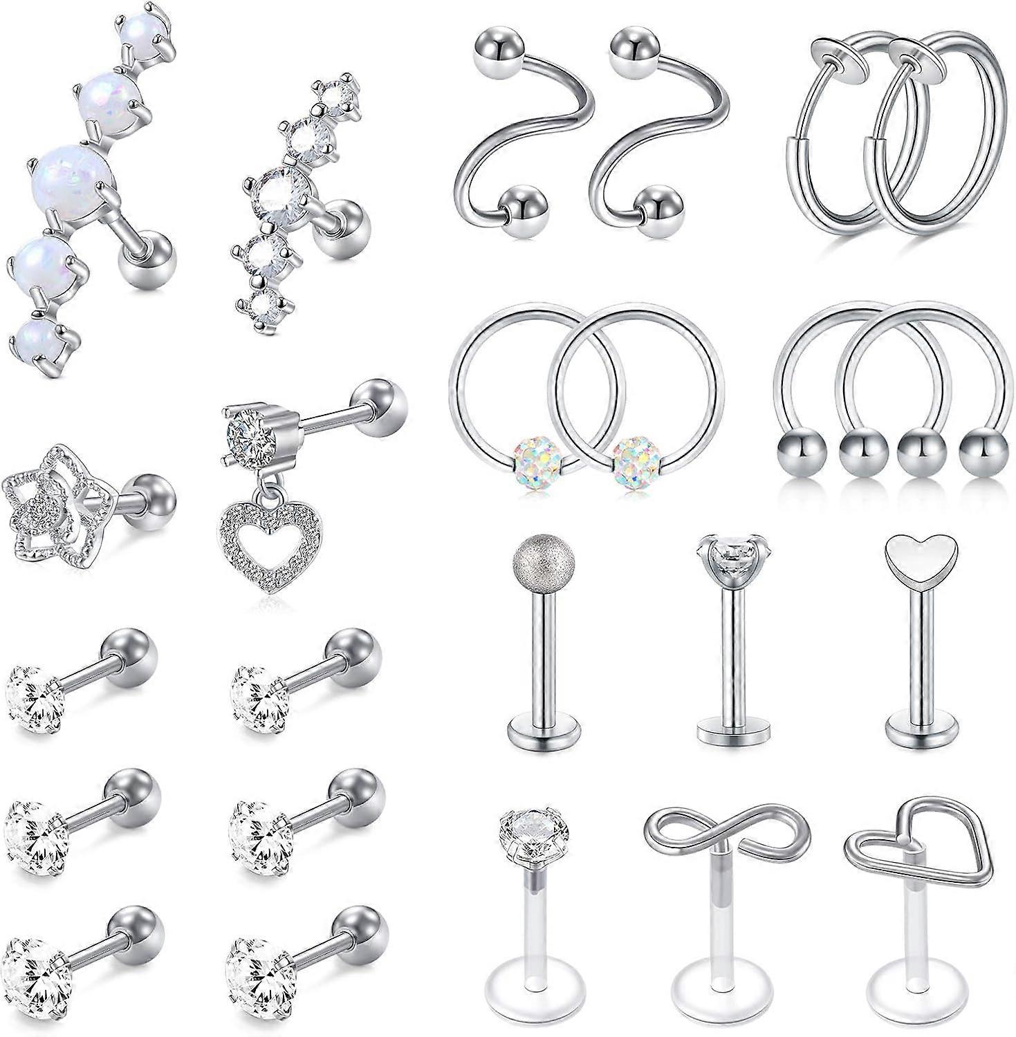 16g Cartilage Stud Hoop Tragus Piercing Jewelry - Forward Helix, Rook, Daith, Conch Earrings - Stainless Steel