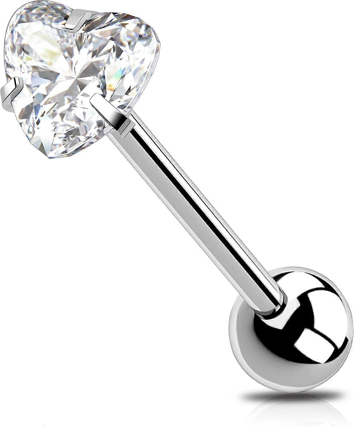 Titanium Tongue Ring 14G Heart Piercing Jewelry - Externally Threaded G23 Star Barbell With Clear CZ for Women Heart