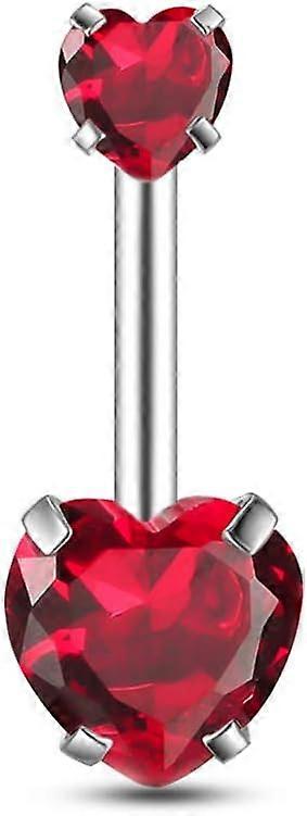Love Belly Button Rings Double Heart Zircon 14G 316L Stainless Steel Navel Ring Belly Rings Piercing Jewelry A:Red