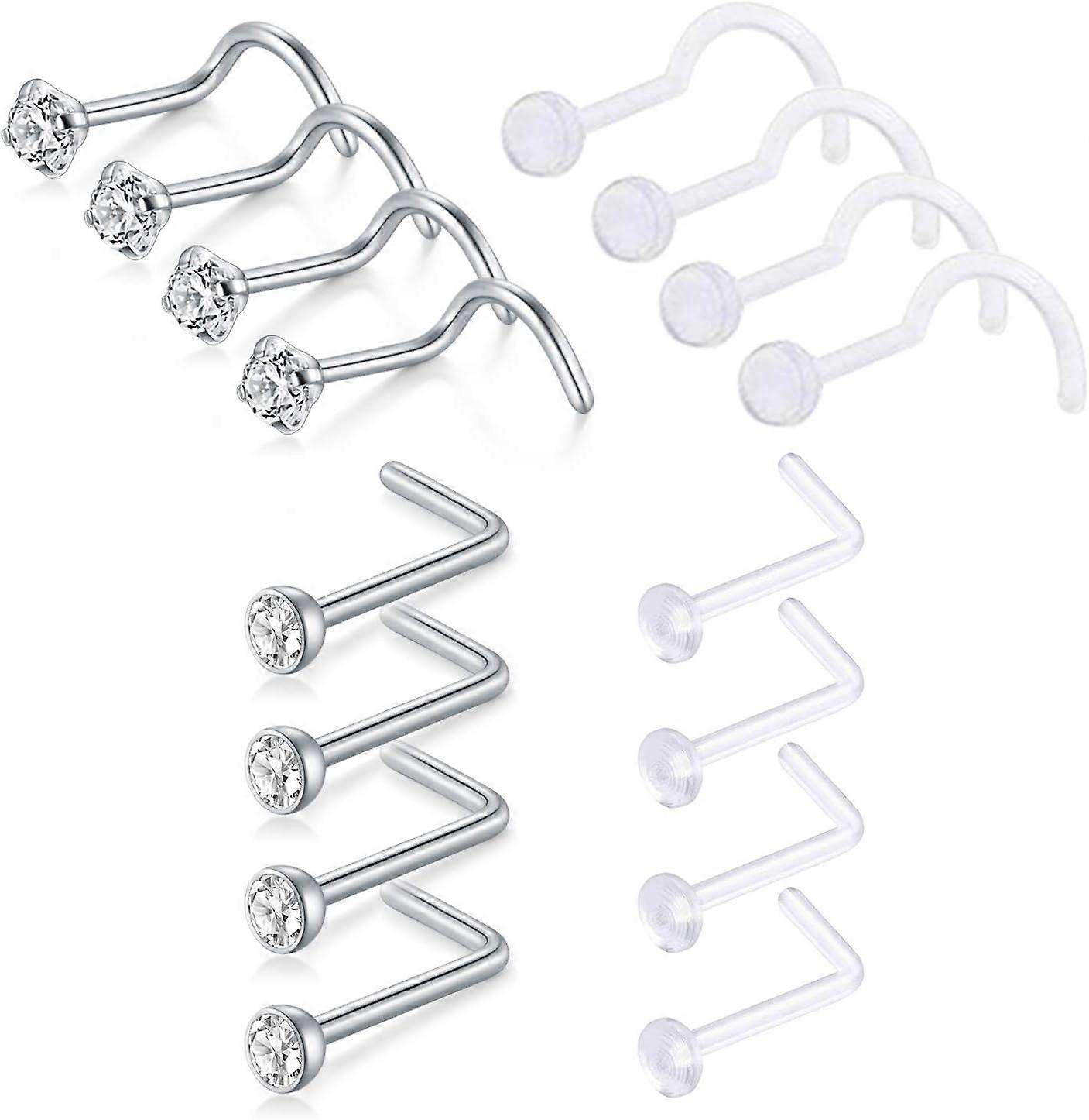 20G Stainless Steel Nose Rings - 20 Gauge Hoops & Studs - Flower, Heart, Diamond & L-Shaped Nostril Nose Piercing Jewelry for Women & Men