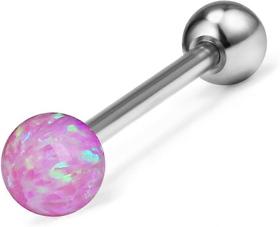 Hypoallergenic F136 Titanium Tongue Ring Piercing Jewelry Women Men 14 Gram 5/8 Inch Metal Barbell Charm Multicolor Opal Ball Pink Cat's Eye Stone