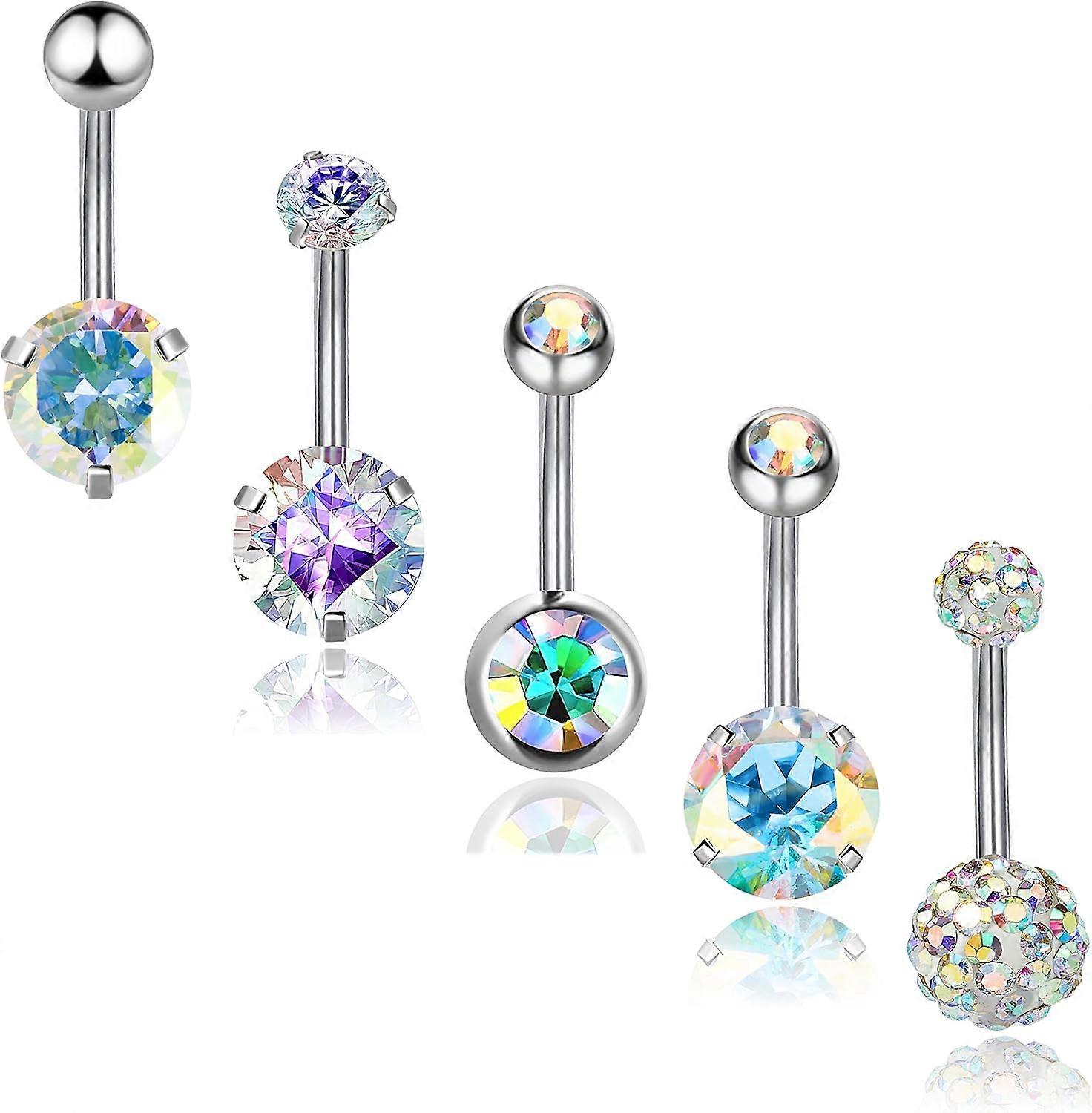 14G Stainless Steel Belly Button Rings for Women Navel Rings CZ Body Piercing Silver D