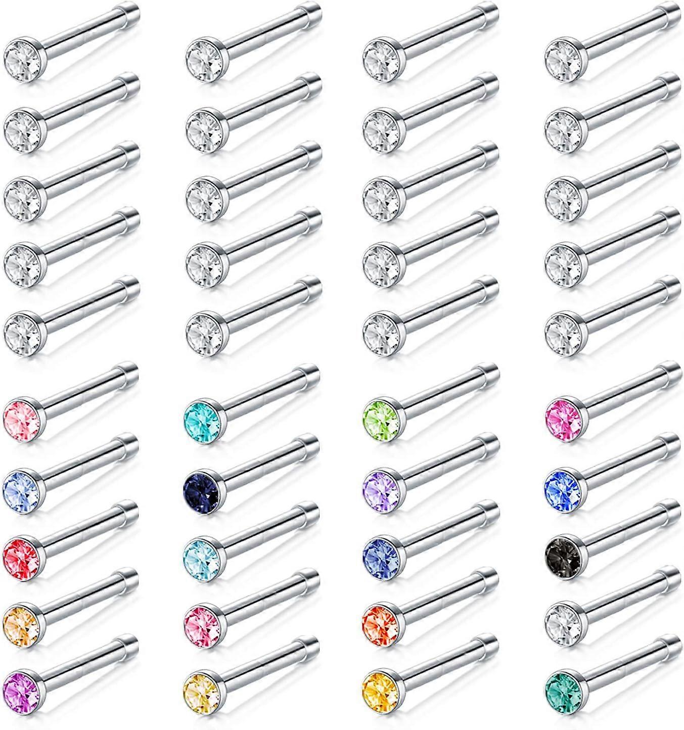 18G 20G 22G Nose Pin Bone Screws Studs Surgical Steel Body Piercing Jewelry for Women Men D: 20g clear cz + mix color cz set
