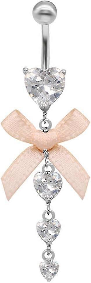 14G Bowknot Dangle Belly Button Ring for Women - Stainless Steel Navel Rings Piercing Barbell - Sparkling Body Piercing Jewelry Beige
