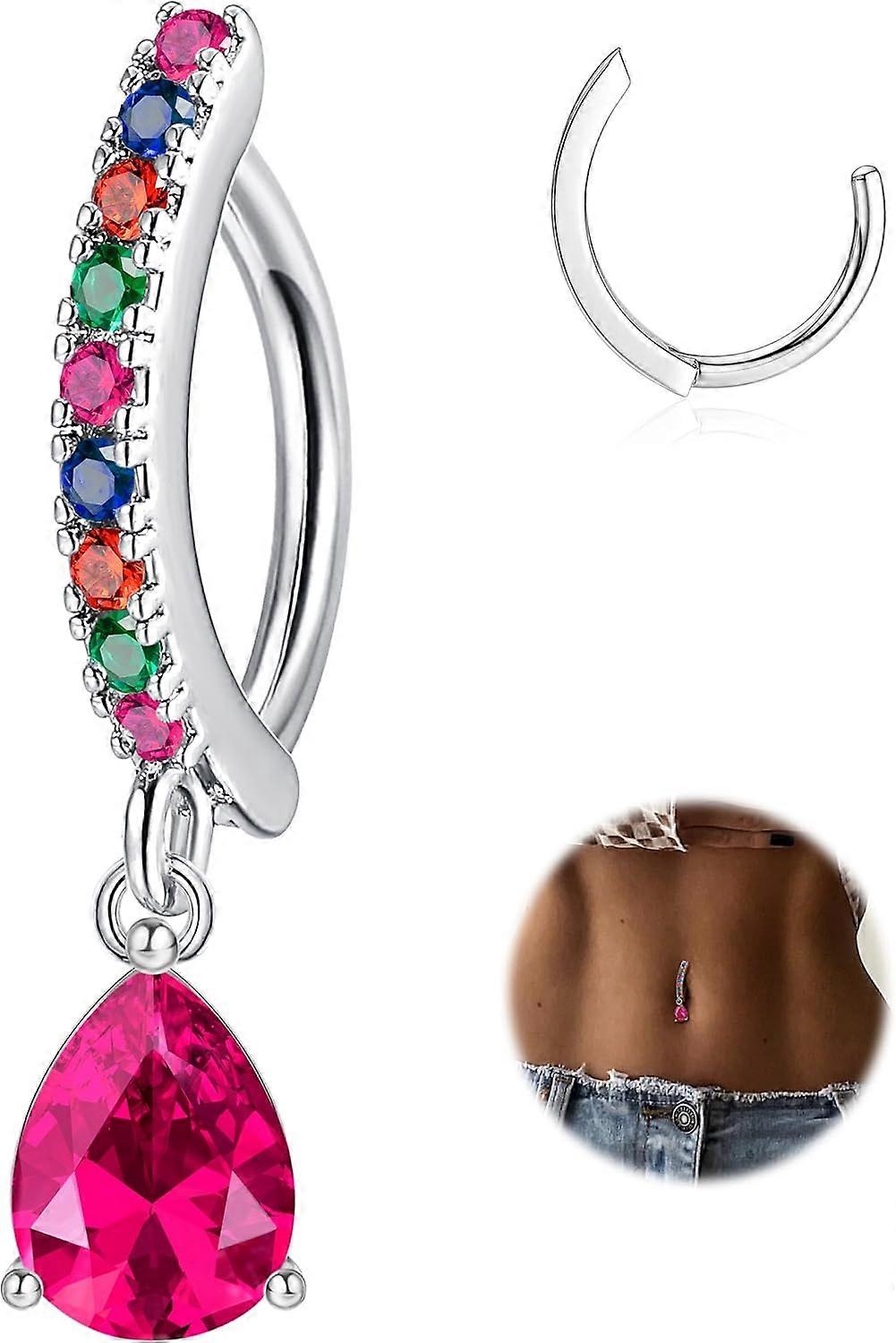 14G Clicker Belly Rings 316L Surgical Steel Dangle Belly Button Ring CZ Teardrop Pendant Navel Rings Barbell Body Piercing Jewelry Colorful