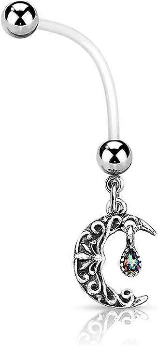 14GA Antique Filigree Carved Crescent Moon Danglewith 316L Surgical Stainless Steel Pregnancy Navel Belly Button Ring