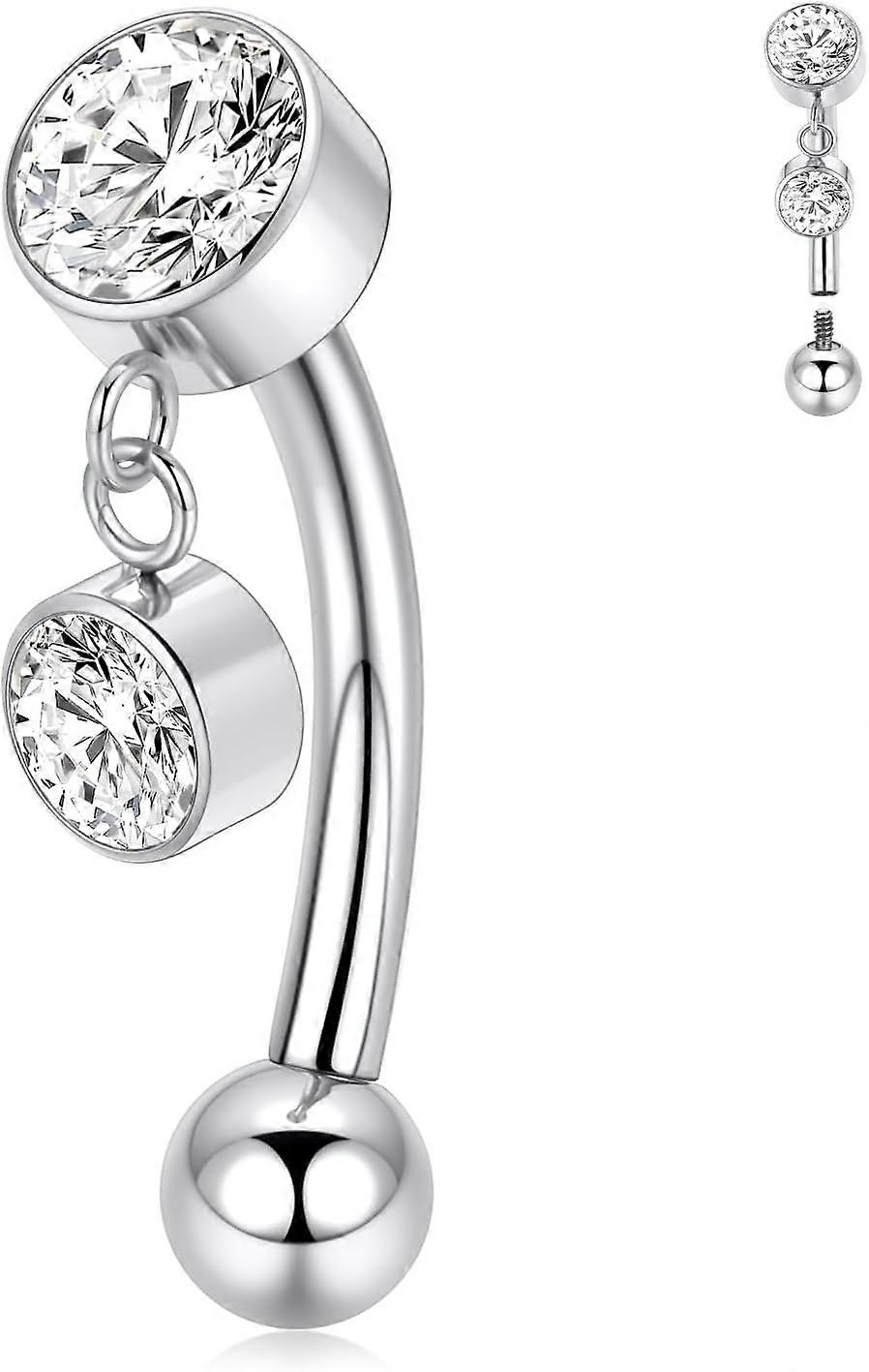 Belly Button Ring Cubic Zirconia Dangle Belly Button Piercing G23 Titanium Belly Ring Navel Piercing Jewelry 14G Navel Barbell Stud Silver