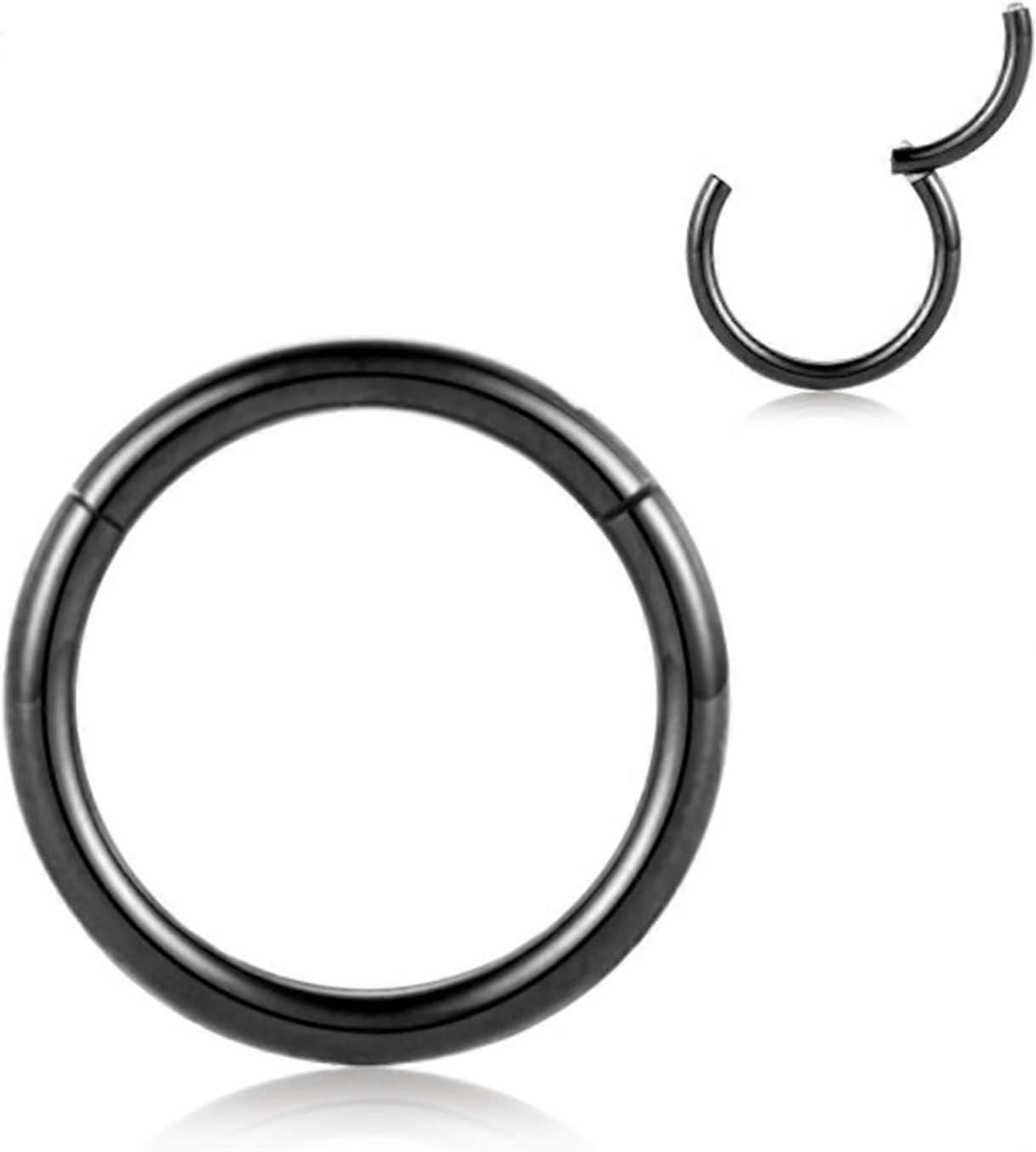 316L Surgical Steel Hinged Nose Rings Hoop for Nose Septum Cartilage Helix Tragus Conch Rook Daith Lobe Lip Piercings 1 Pc Black 14G 10mm