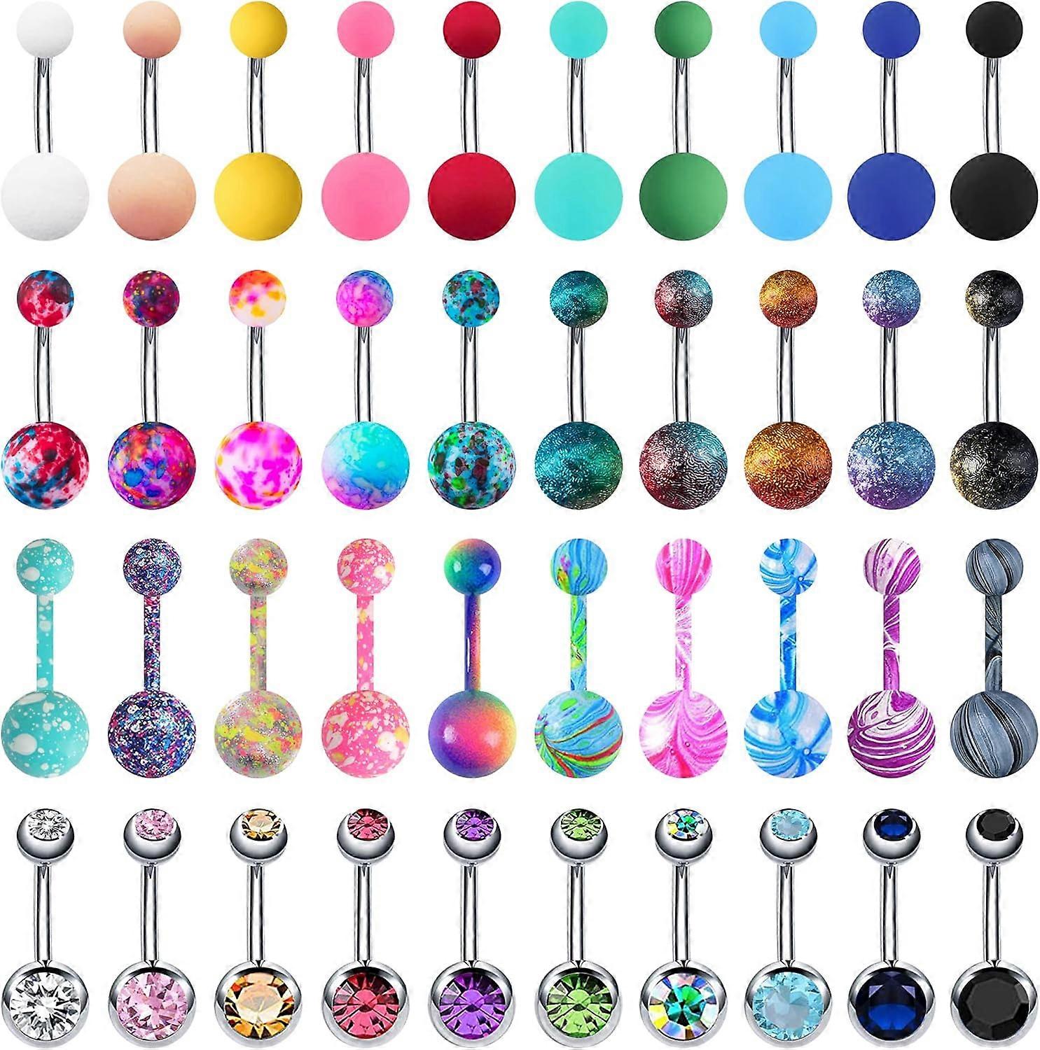 24-50Pcs 14G Stainless Steel Belly Button Rings for Women CZ Screw Navel Bars Body Piercing Jewelry F: 40pcs style 2