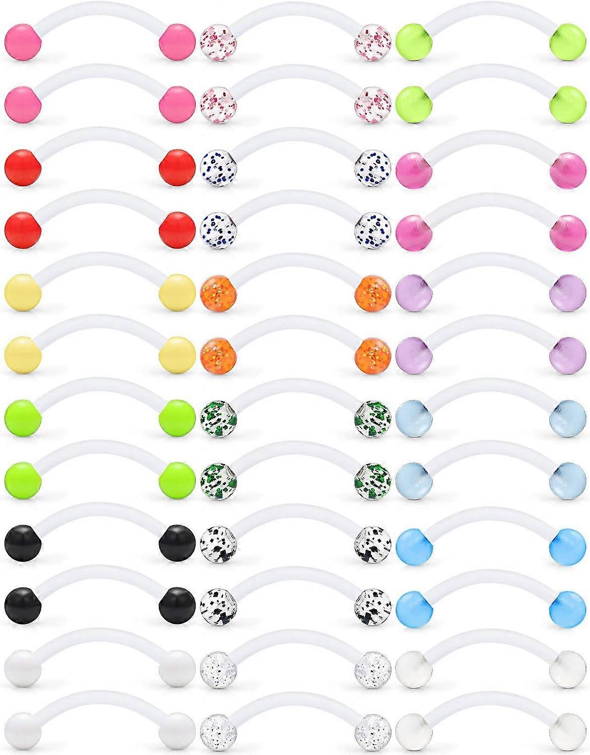 14G 16mm Glitter Bioflex Flexible Acrylic Curved Barbell Snake Eyes Tongue Nipple Ring Body Piercing Jewelry Retainer 8-36PCS 36PCS - Mix Style 1#