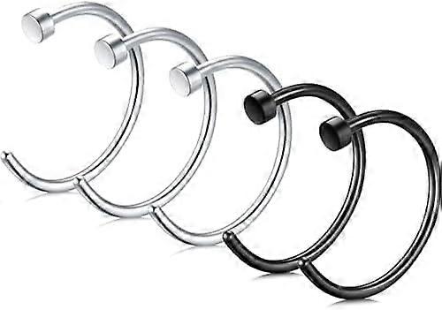18G-22G 5PCS Stainless Steel Body Jewelry Piercing Nose Ring Hoop for Women Silver+Black Tone