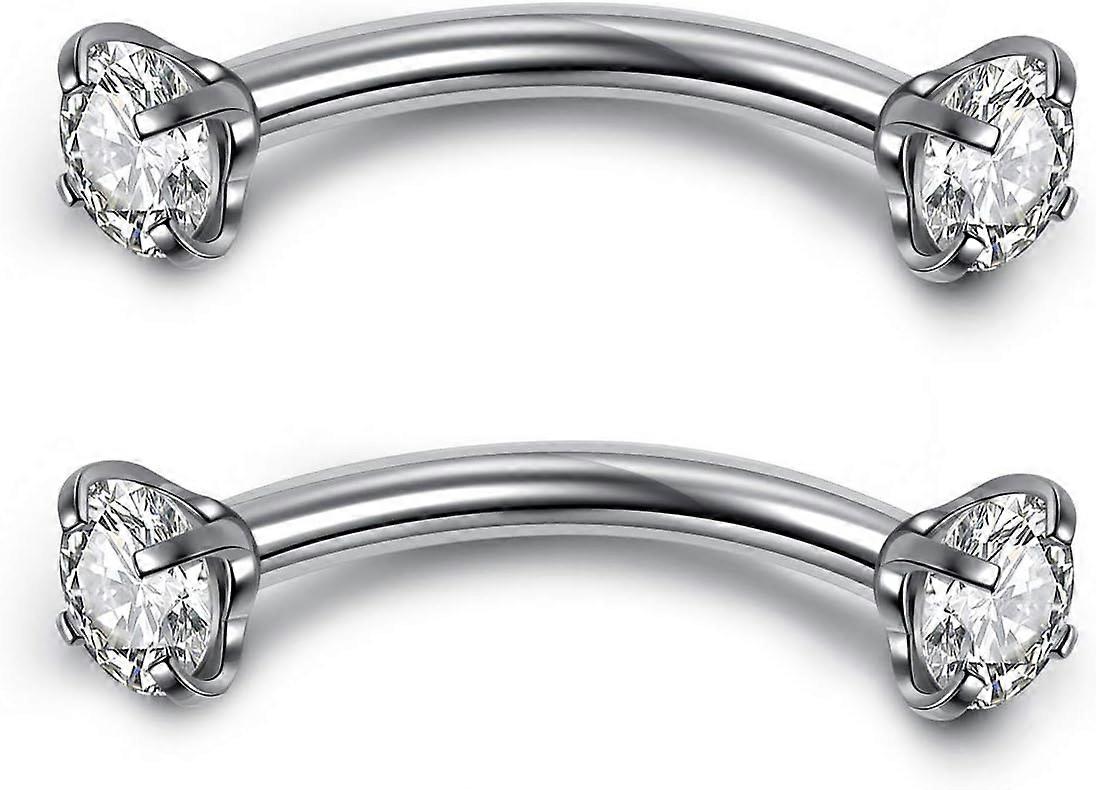 2-5PCS 16G 3/8" (10MM) Stainless Steel Cubic Zirconia Gem(3MM) Internally Thread Curved Barbell Eyebrow Piercing Jewelry Silver