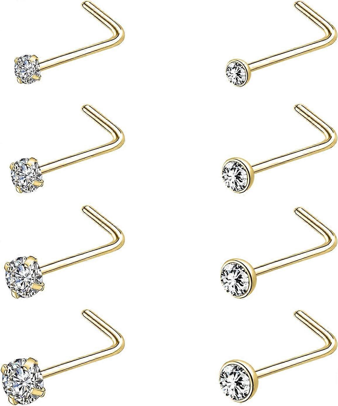 6-10Pcs 18G 20G Nose Ring Surgical Steel Nose Rings Studs Piercing For Women Men 1.5mm 2mm 2.5mm 3mm Round Diamond L Shaped Corkscrew Gold Black