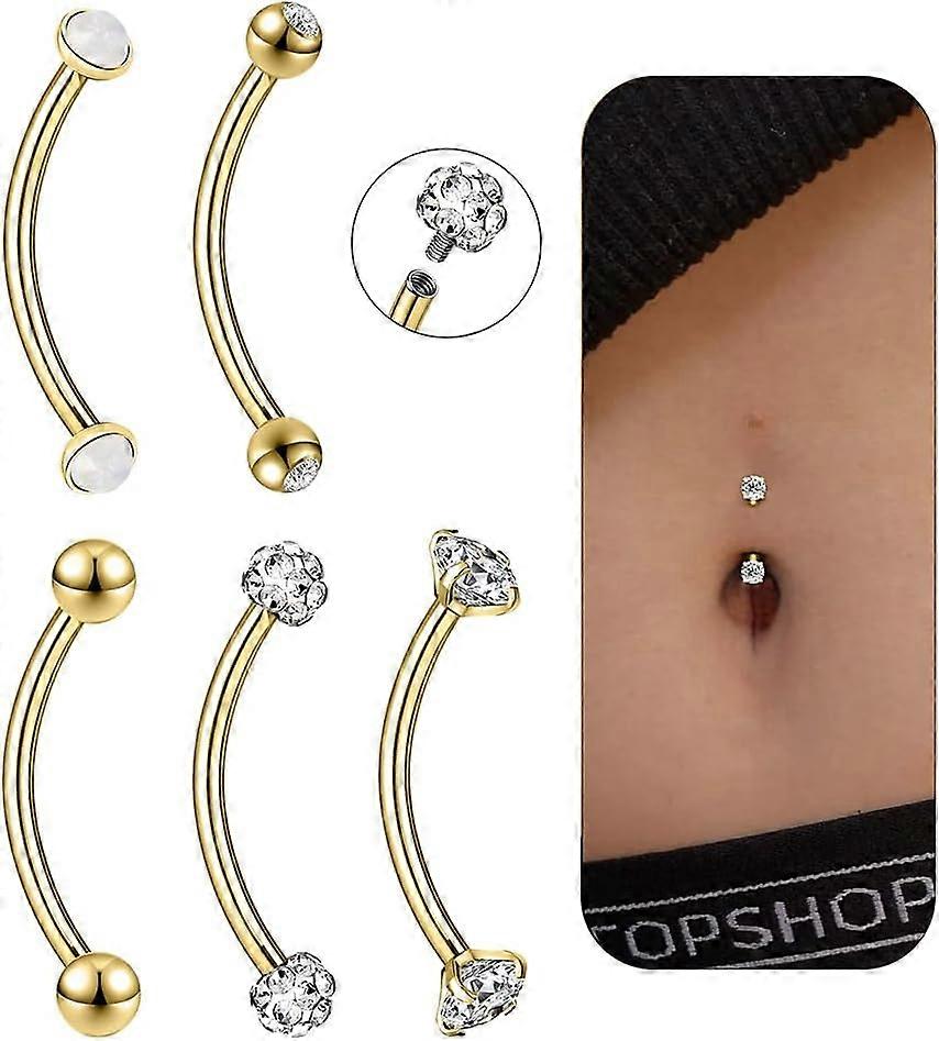<p>Preferred Quality: The 14G curved barbell is made of 316L surgical stainless steel and clear sparkling CZ, with hypoallergenic and friendly to sensitive skin. Smooth surface without sharp edges to avoid any discomfort or irritation. Comfortable fit, suitable for daily wear</p> <p>Multi Application: Women's belly button rings can also be used as Eyebrow Piercing Jewelry, Anti Eyebrow Piercing Jewelry, Bridge Piercing Jewelry, Rook Earrings, Frog Eyes Piercing Jewelry, Surface Tragus Piercing Jewelry, Wait, easily match clothing from dresses to summer outfits and bikinis</p> <p>Style Selection: 5PCS tiny belly button ring set (of the same length), including five different styles such as CZ, opalite, ball, etc. The threaded design provides you with a more convenient and secure wearing experience, and you can choose gold or silver. Simplicity and elegance</p> <p>Maintenance Tip: In order to prolong the use time of the product and maintain its luster, we recommend that you clean it with a soft cloth and store it in a box when not wearing it. Avoid collisions with hard or sharp objects to prevent scratches from being left on the surface of jewelry</p> <p>Size Selection: Gauge size: 14G=1.6mm. There are 5 sizes available for these belly button rings: 6/8/10/12/14MM. Please carefully measure/verify your size and choose according to your own needs</p>