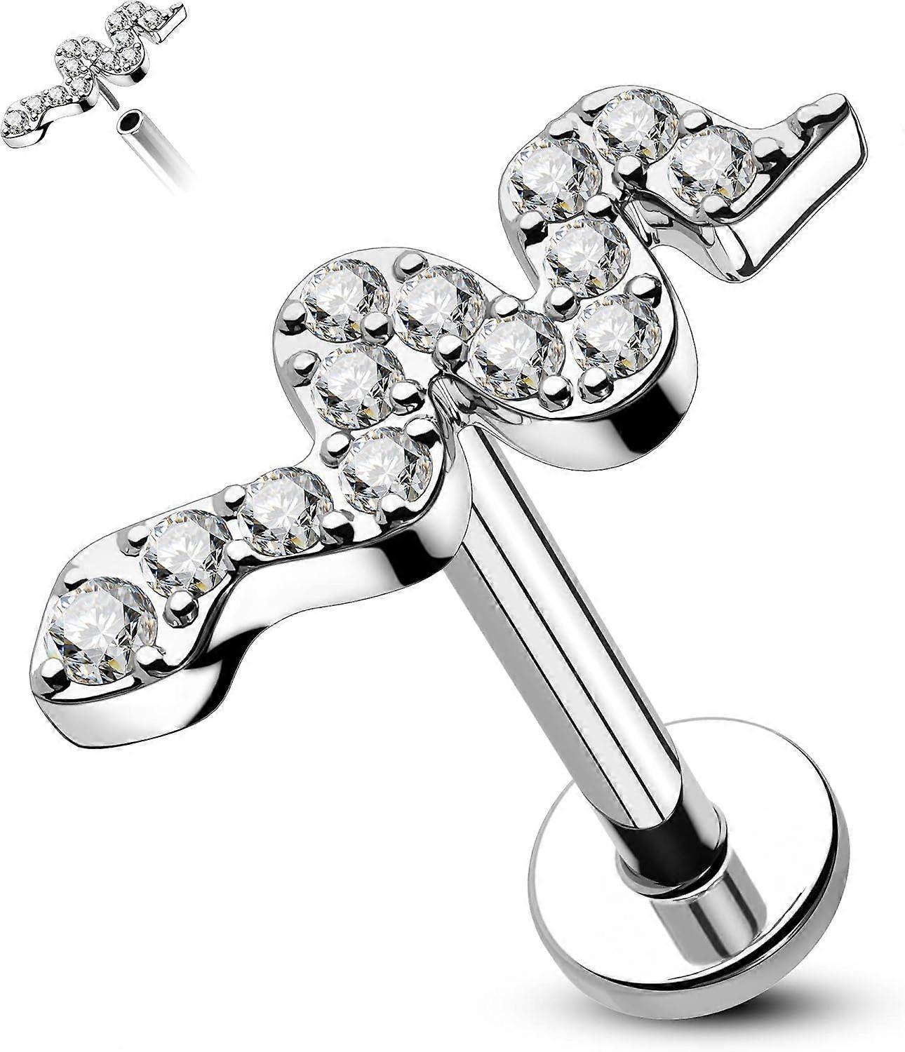 16g Flat Back Cartilage Earrings Stud Push in G23 Titanium Snake Helix Earrings Press Fit Cartilage Helix Piercing Jewelry Threadless 16 Gauge