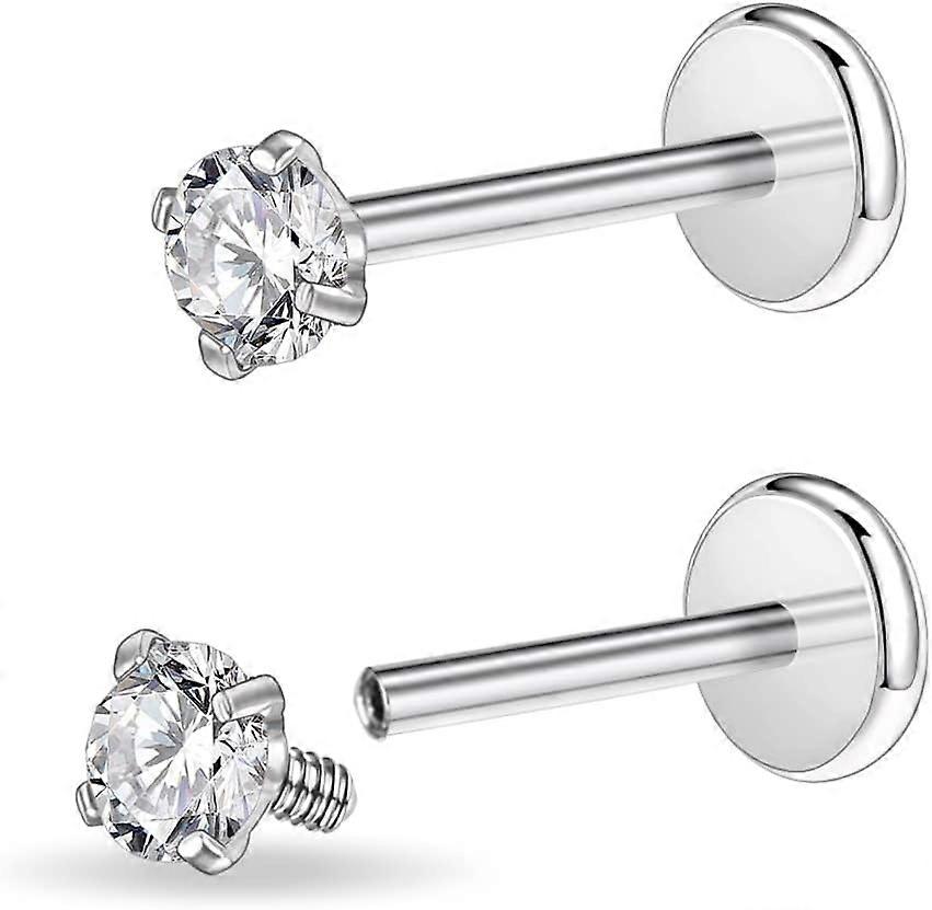 16g/18g Surgical Steel Internal Thread Stud Piercing Jewelry for Tragus/Nose/Helix/Conch/Medusa/Lip/Labret - Helix Tragus Cartilage Earring for