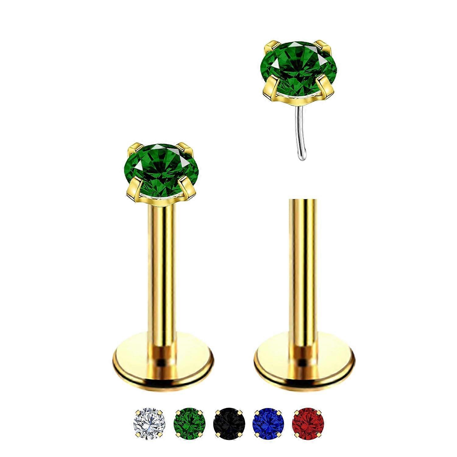 2 Pcs Green Nose Stud, 20g Cartilage Emerald Earrings Tragus Piercing Jewelry for St Patricks Day Accessories, Gold Nose Ring as May Birthstone
