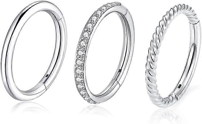 <p>Simple yet stylish hinged segment nose rings are suitable for women men Come with A Blue Velvet Pouch,Best gift for your girlfriends, wife, mother and friends on Anniversary, Birthday, Engagement, Party, Meeting, Dating, Wedding, Daily Wear etc. Any clothes jeans,dress,beach long dress, nightclub mini skirt etc.can be Matched out a Sense of Fashion.. Also a great idea for yourself.Warning: Small parts. Not for children under 3 years</p> <p>Hinged Clicker Sleek Seamless Hoops, Basic Circle Style Nose Rings Septum Jewelry, Match Earrings And Ear Studs Are Beautiful, Women Men Unisex</p> <p>Perfect for nose rings hoop,septum jewelry septum ring / septum clicker, ear piercing earrings ear lobe earrings, helix earrings, cartilage earring, conch piercing earrings, forward helix earring, rook earrings, daith earrings, tragus earrings, antitragus earrings, snu earrings, second or third lobe piercing hoop for small ears, lip rings, nipple rings, smiley piercing and more.</p> <p>One Order Come With 3 Pcs Improved CZ Twisted Clicker Nose Rings Seamless Hoop Piercing With Different Design for your Daily Defferent Styles, Pin Gauge size:16 Gauge (1.2mm), Inner Diameter 5/16" (8mm).Color: steel.</p> <p>Material: 316L Surgical Steel + AAAA+Cubic Zircon. Surgical Steel Hoop Earrings 316L Surgical Steel ( lead free, nickel free and cadmium free ) is suitable for sensitive skin. You needn't worry about allergies. Polished very well, comfortable to wear without sharp edge.Perfect as Daily Jewelry,Trendy and Easymatching With Your Wardrobe, Flexible Clicker Closure, Convenient to Open or Close</p>