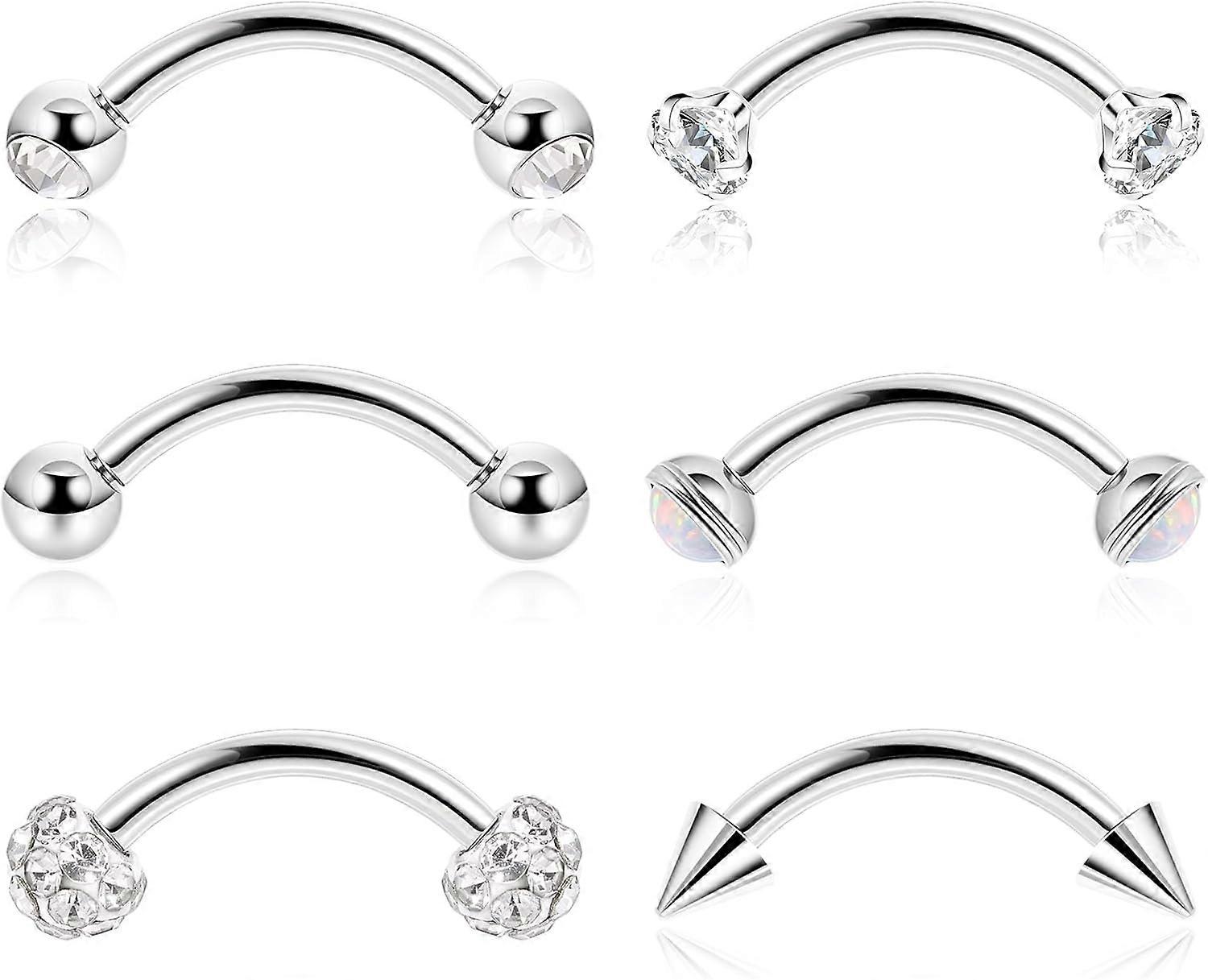 6Pcs 16G G23 Pure Titanium Eyebrow Rings for Women Men Daith Rook Earrings Eyebrow Studs Curved Barbell Tragus Rook Piercing Jewelry Snake Eyes