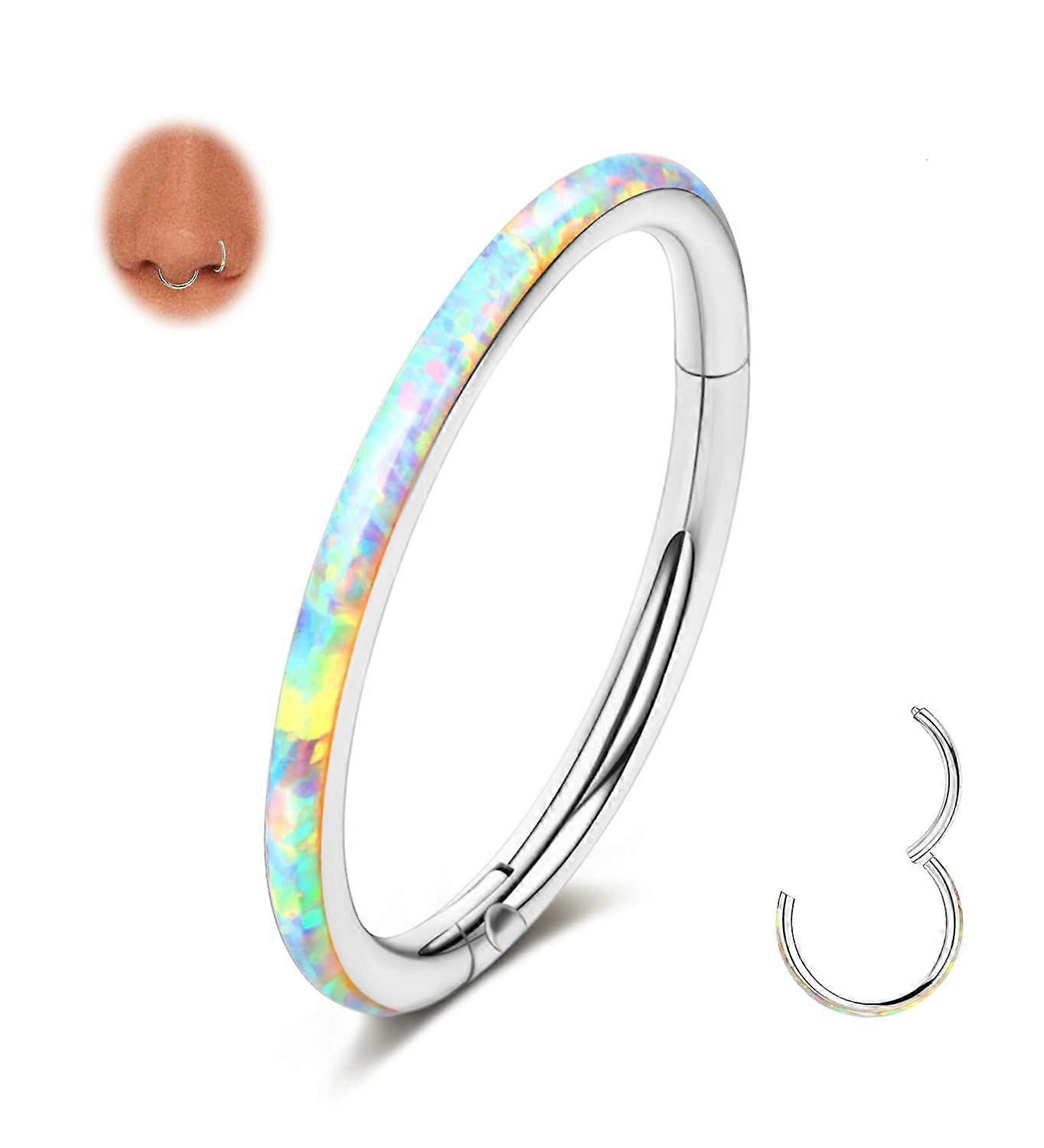 Opal Septum Ring 16G 18G 20G Hinged Hoop Ring for Women Stainless Steel Opal Nose Ring Hoop Septum Piercing Clicker Ring Cartilage Tragus Helix