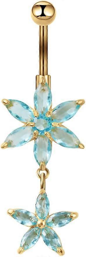 Hypoallergenic Surgical Steel Flower Dangle Belly Button Rings 14G Belly Piercing Jewelry for Women Dainty Cubic Zirconia Flower Navel Rings 3/8