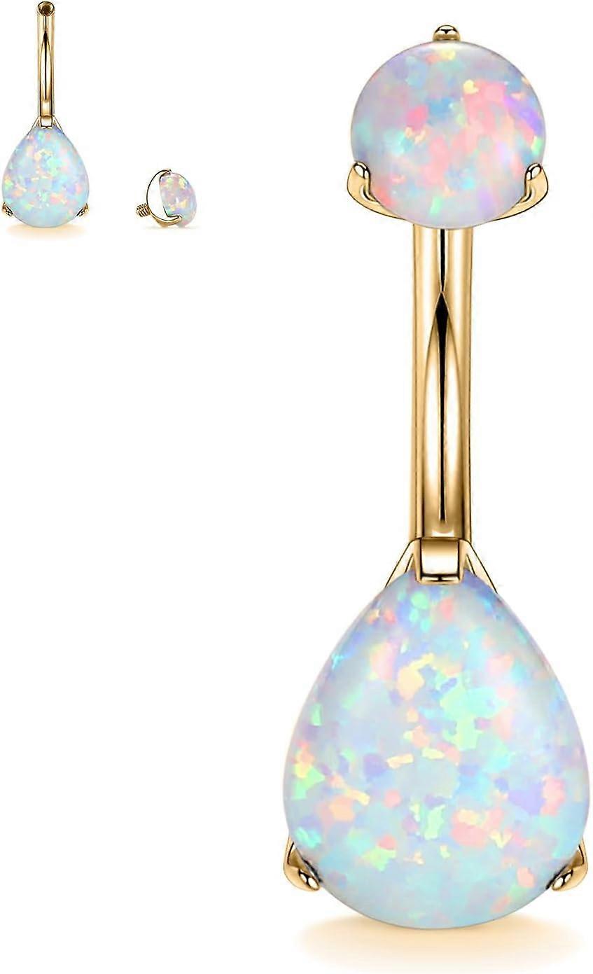 <p>Internal Thread Belly Barbell: Excellent internal thread tightening flexibly make the curved belly bar will not fall off easily</p> <p>Opal Belly Piercing Material: made of grade 23 titanium and opal, better than 316L stainless steel; Polish smooth surface suitable for belly piercing jewelry and is's comfortable to wear</p> <p>Cute Naval Ring Design: fashion waterdrop opal inlaid naval jewelry to make you unique</p> <p>Belly Ring Gauge: Bar thickness:14 G( 1.6 mm); Bar length: 3/8( 10 mm); Top opal size: 5 mm; Bottom opal size: 9 mm; Color: gold; Opal color: white; Common belly piercing size for women and men</p> <p>Package: include 1 pc gold belly ring and come with a velvet bag; this belly piercing is suitable wear on festival, holiday and vacation</p>