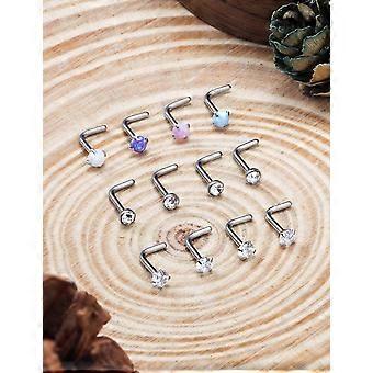 18G 20G 22G Nose Rings Studs Surgical Steel Nose Stud Set 1.5mm 2mm 2.5mm 3mm Diamond Cubic Zirconia Opal Screw L Shaped Straight Nose Piercing
