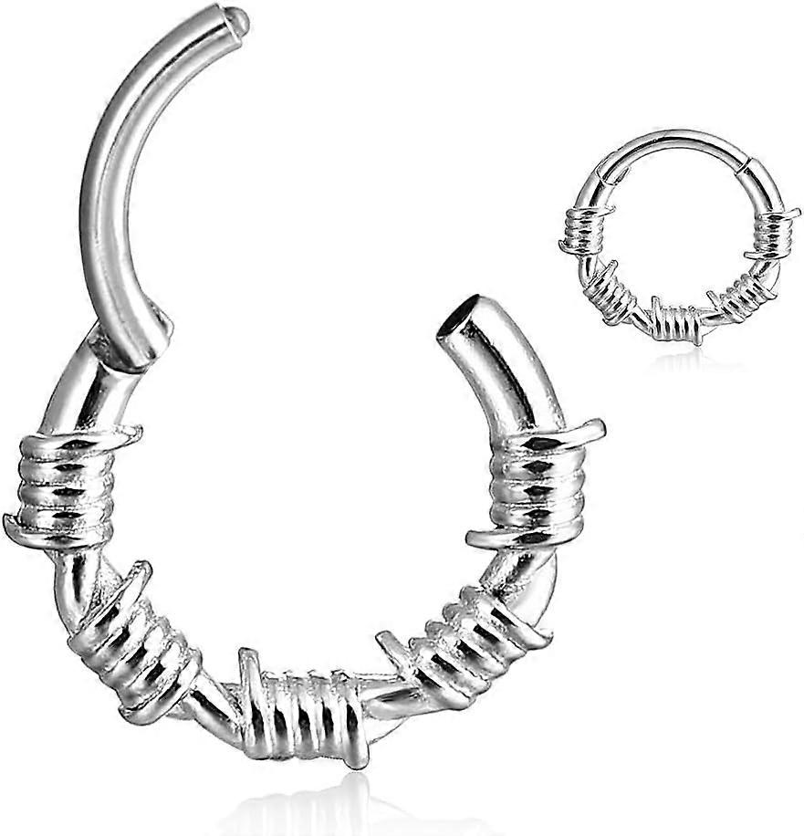 Nose rings hoops,1 Pack 16G/8mm Surgical Stainless Steel Septum Ring Hoop Jewelry Clicker Cartilage Earring Hinged Segment Daith Piercing