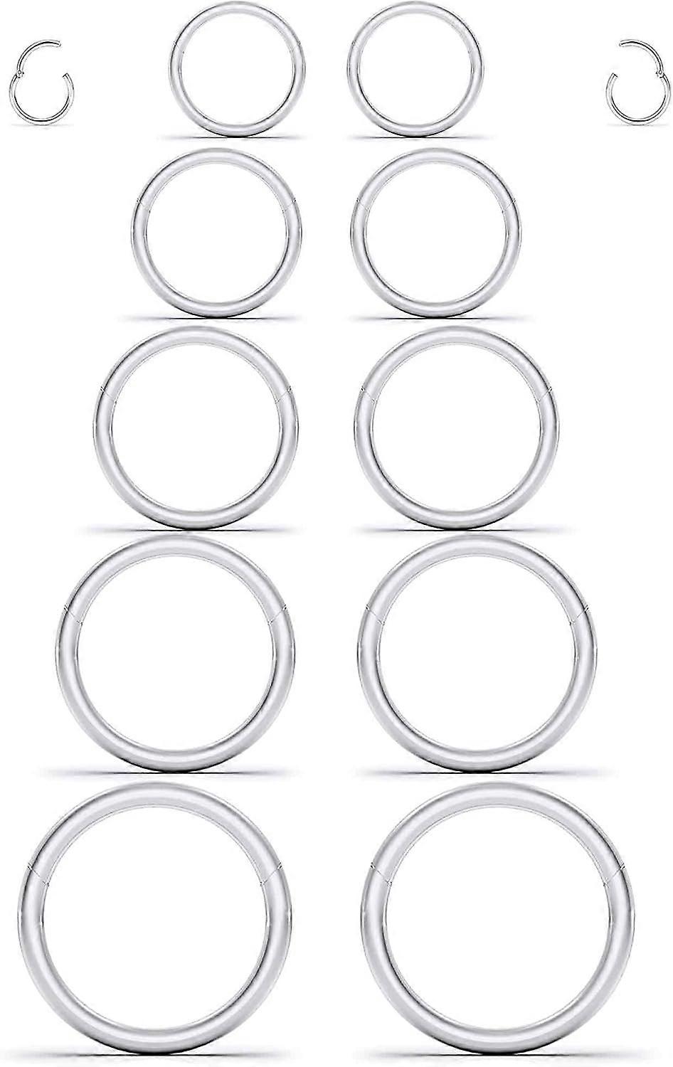 <p>Preferred Choice for Festive Gifts : Ideal for occasions like Christmas, harvest festivals, birthdays, parties, Valentine's Day, gatherings, or weddings, conveying warm wishes. We are dedicated to product design, production, and quality control, providing you with a shopping experience. Sending you the sincerest wishes, may you have an infinitely beautiful future.</p> <p>The package contains 5 pairs of Hoop Rings in 5 different sizes.</p> <p>Material: surgical steel. Hypoallergenic, durable, and not prone to bending. With clicker design, it is more fashionable.</p> <p>Size: Thickness: 1.2mm = 16G. Diameters: There is one pair each of 8mm, 10mm, 12mm, 14mm, and 16mm. Color: silver tone.</p> <p>They can be used for: nose rings, nipple piercing jewelry, cartilage earring, tragus piercing jewelry, helix piercing jewelry, septum jewelry, daith piercing jewelry, rook piercing jewelry, lip rings, and surgical steel earrings for women.</p>
