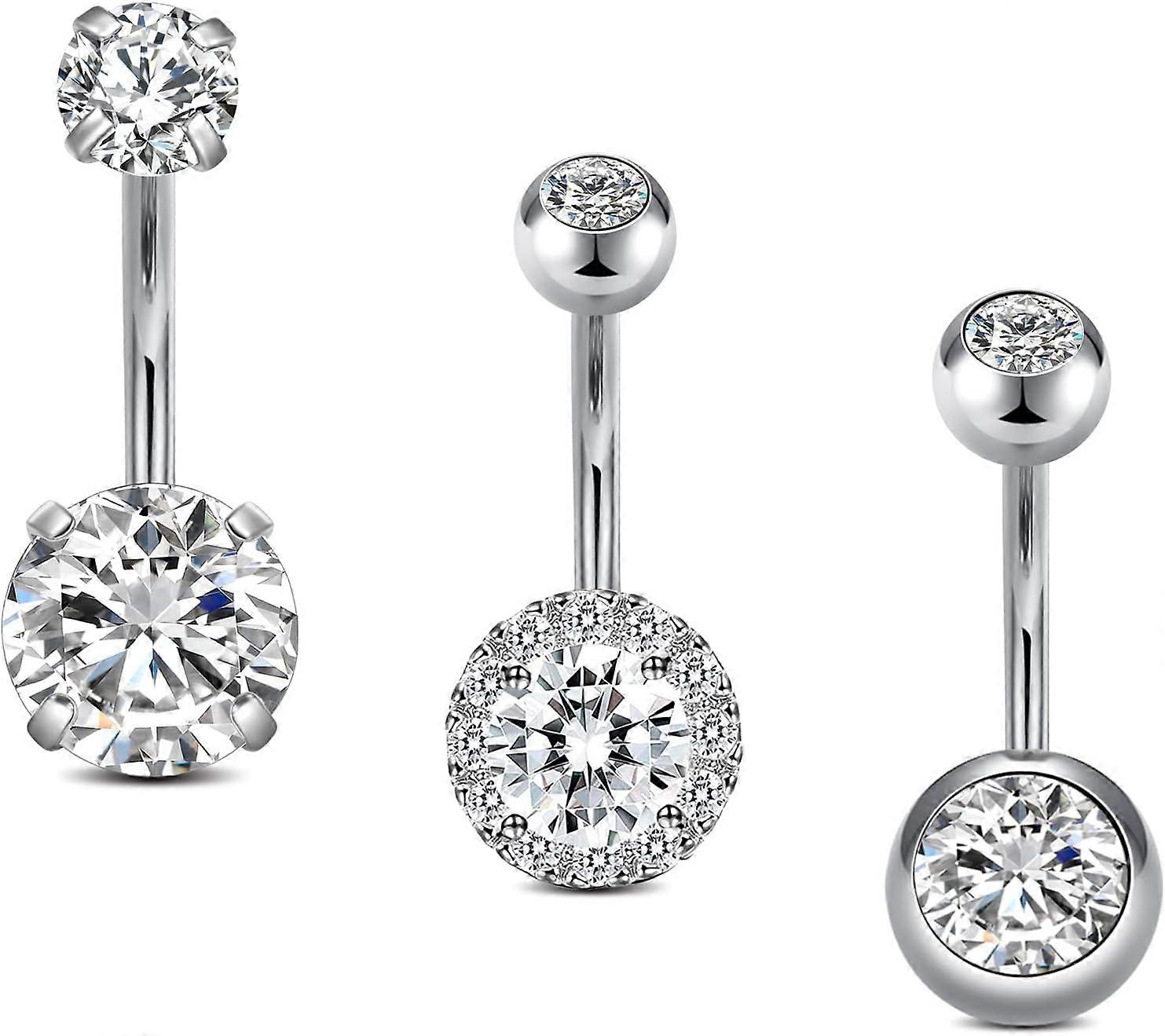 14G Belly Button Rings, Stainless Steel Diamond Short Bar Belly Rings For Women, 6mm/10mm Hypoallergenic Navel Piercings With Gift Velvet Pouch