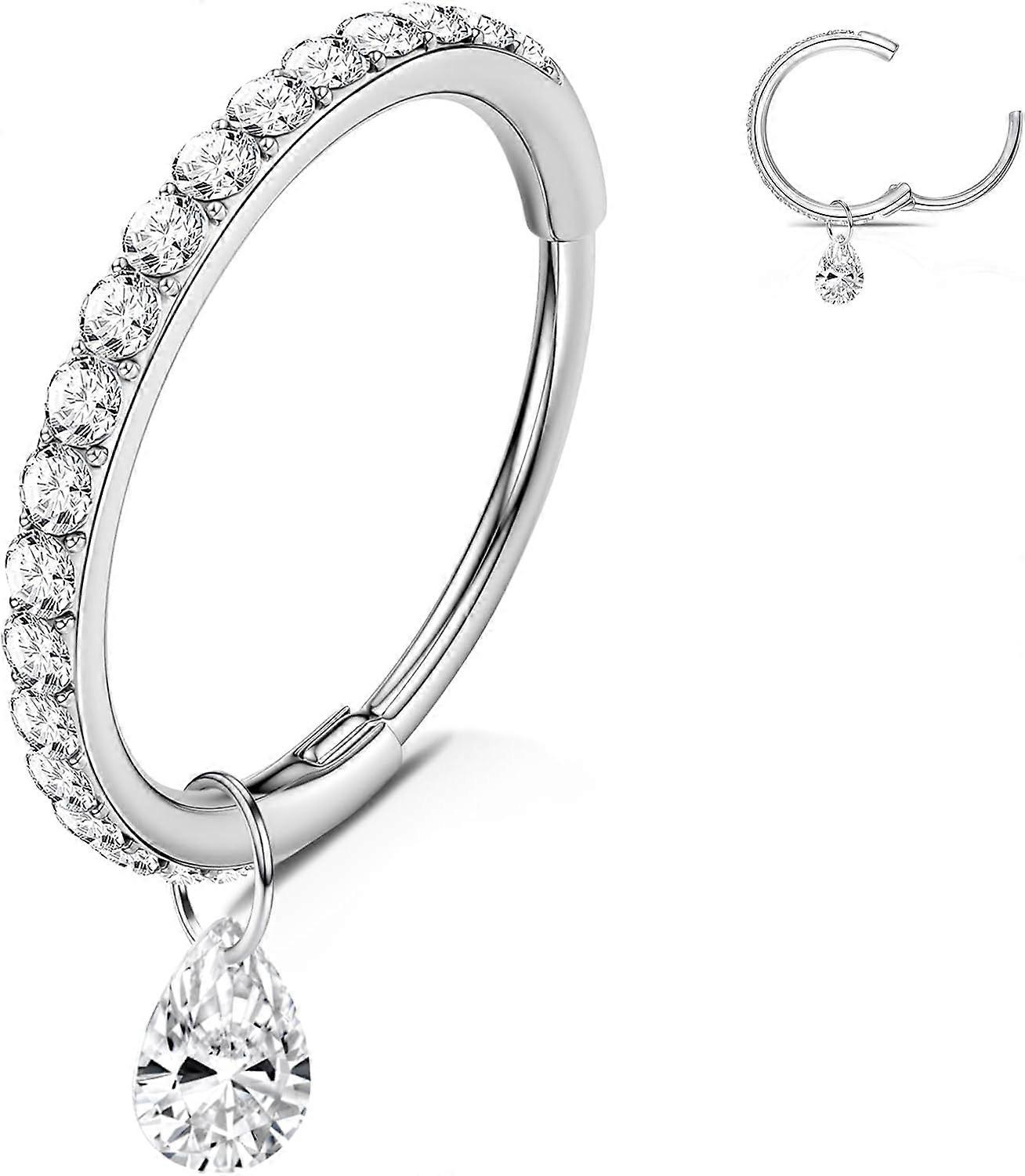 316L Stainless-Steel Piercing-Ring Hinged Nose-Rings-Hoop with Zircon/Opal 14G 16G 18G 20g Body Pierecing Ring Segment Clicker Lip Rings