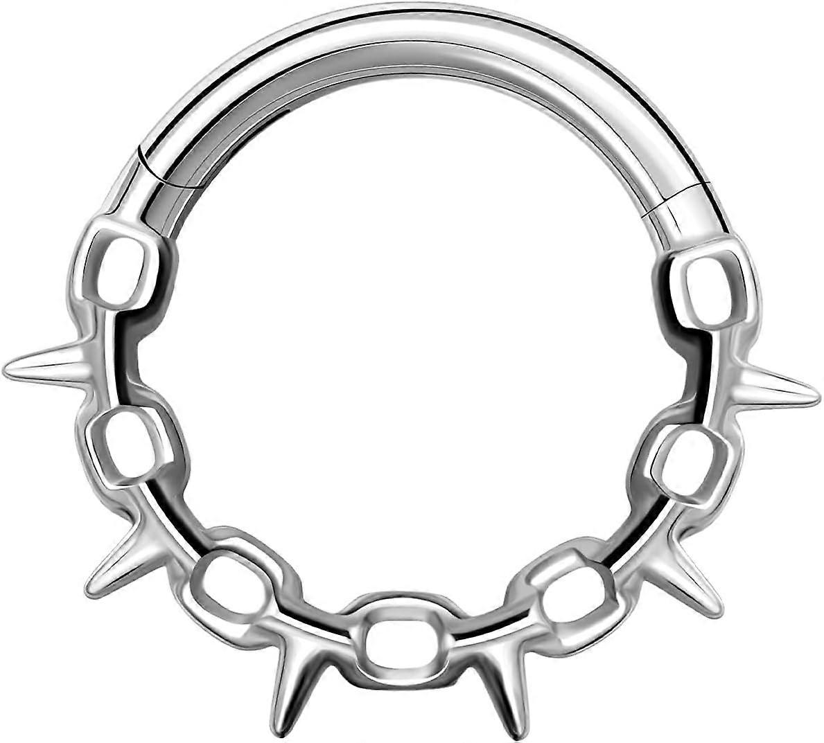 Titanium Septum Ring Daith Hoop 16G Surgical Titanium Spiked Chain Nose Piercing Jewelry for Men Women, 8mm 10mm, Silver Gold, Hypoallergenic