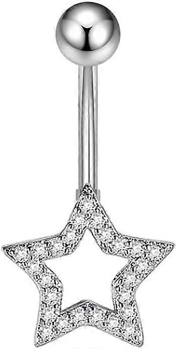 Dainty Star Belly Button Ring Surgical Stainless Steel Crystal Cubic Zirconia Lucky Star Navel Rings Barbell Stud Fashion Jewelry for Women Men