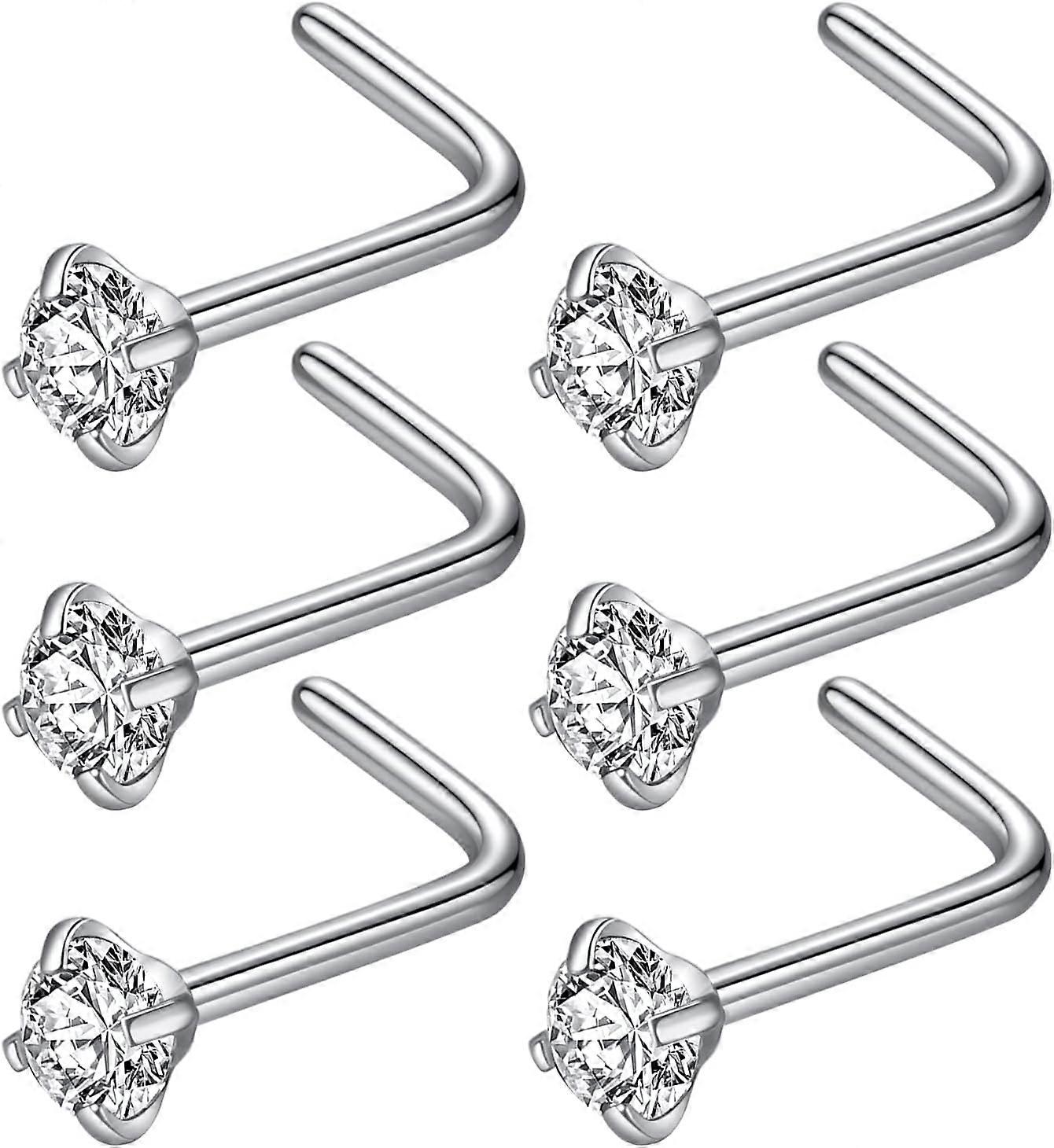 316L Surgical Steel 22g/20g/18g Nose Rings Studs L-Shape Nose Nostrial Piercing Body Jewerly L Shaped Nose Studs 1.5mm 2mm 2.5mm 3mm CZ Nose