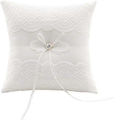 Ivory Satin and Lace Pearl Wedding Ring Bearer Pillow Cushion Embroider Flower Lace with Bow, 7.9 Inch Ring Bearer for Beach Wedding Ivory 1