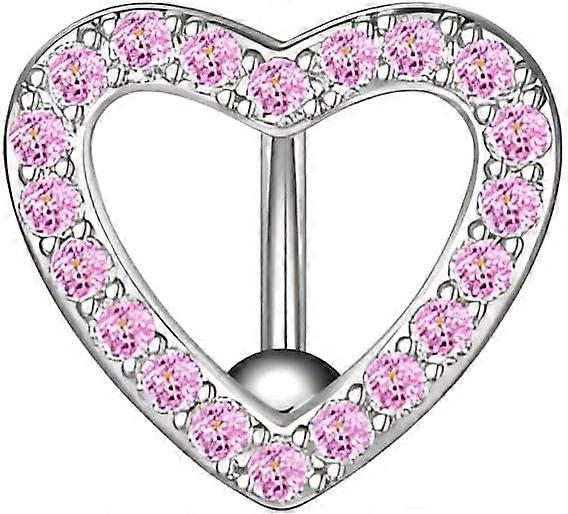 1 PC 14G Silver Love Heart Belly Button Rings with Clear Zircon Stainless steel Navel Reverse Hinged Hypoallergenic Piercing Jewelry for Women
