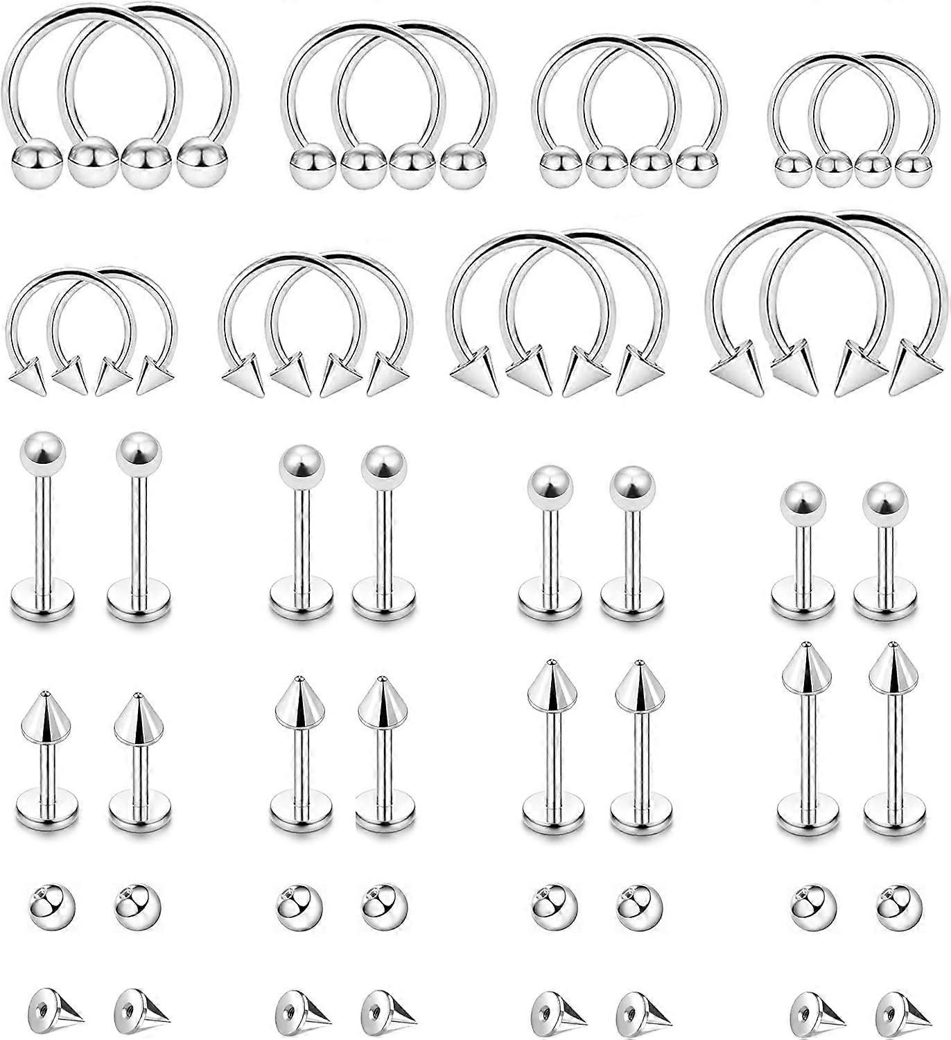 32PCS 16G Lip Rings Surgical Steel Snake Bite Jewelry Labret Jewelry Monroe Lip Barbell Ring Daith Tragus Helix Piercing Jewelry for Women Men