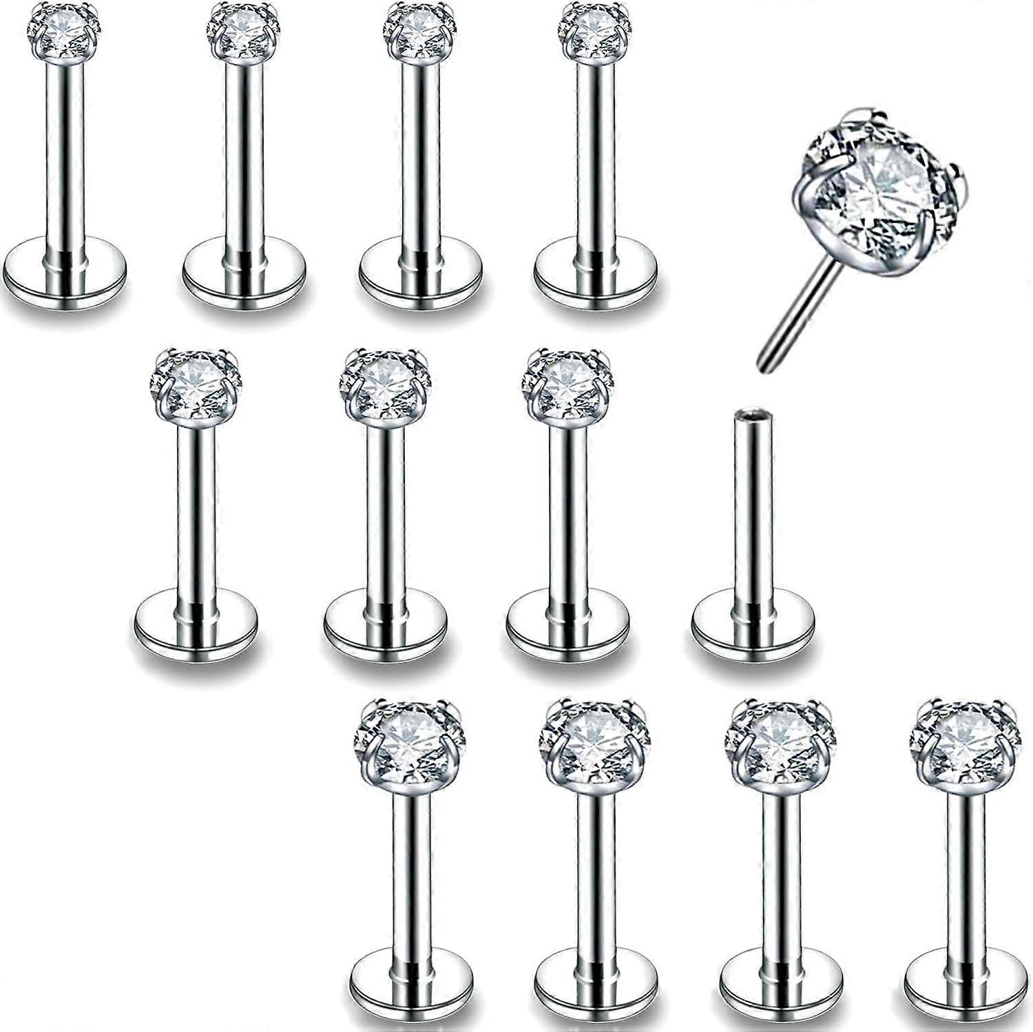 <p>Size: : Gauge=16G/18G/20G, 4 pcs each of 2/3/4mm zirconia, 6/8/10/12mm bar length you can choose. You will receive 12pcs lip rings for women men. They are also nice gift for body piercing lover.If you have any question be free to contact us.</p> <p>Hypoallergenic Material: : These tragus earrings made of SURGICAL STEEL, hypoallergenic and antirust cartilage earrings, perfect for sensitive skin.</p> <p>Feature: : All the cartilage earring are PUSH IN: style, not internal threaded, tick tock, you're wearing it, so quick! 316L Stainless steel does not bend compared to acrylic.</p> <p>Using: : Multiple used as nose piercing jewelry, helix earrings, conch helix piercing jewelry, lip rings, labret stud, medusa piercing jewerly. only one earrings set will satisfy all your usage needs. Super Valuable.</p> <p>Item Contain: : 12 pcs labret jewelry in total, 4 pcs each of 2/3/4mm AAA zirconia lip piercing jewelry, affordable nose piercings set. best choice for you!</p>