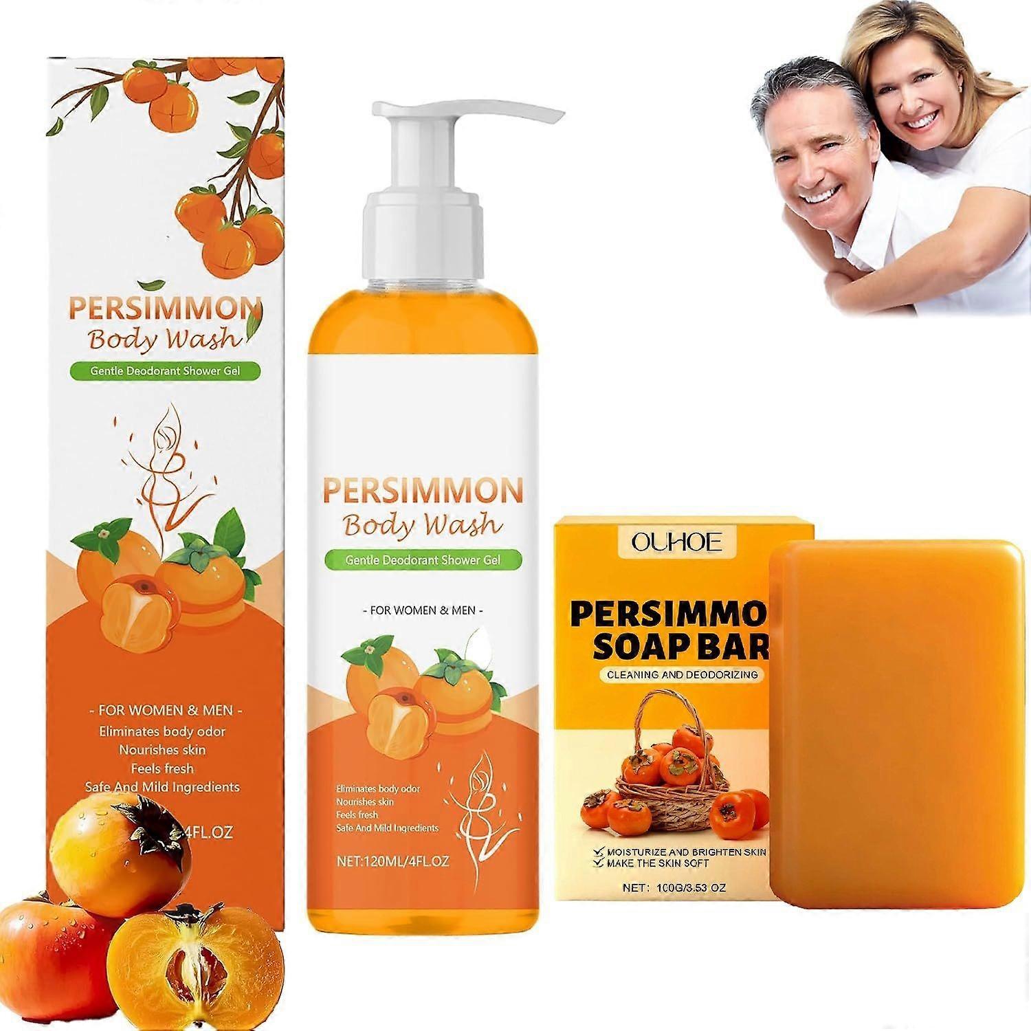 Persimmon Soap Bar and Persimmon Body Wash Set for Body Odor Control, Natural Deodorant Soap for Old People Smell, Persimmons Bath Soap for Women & Me