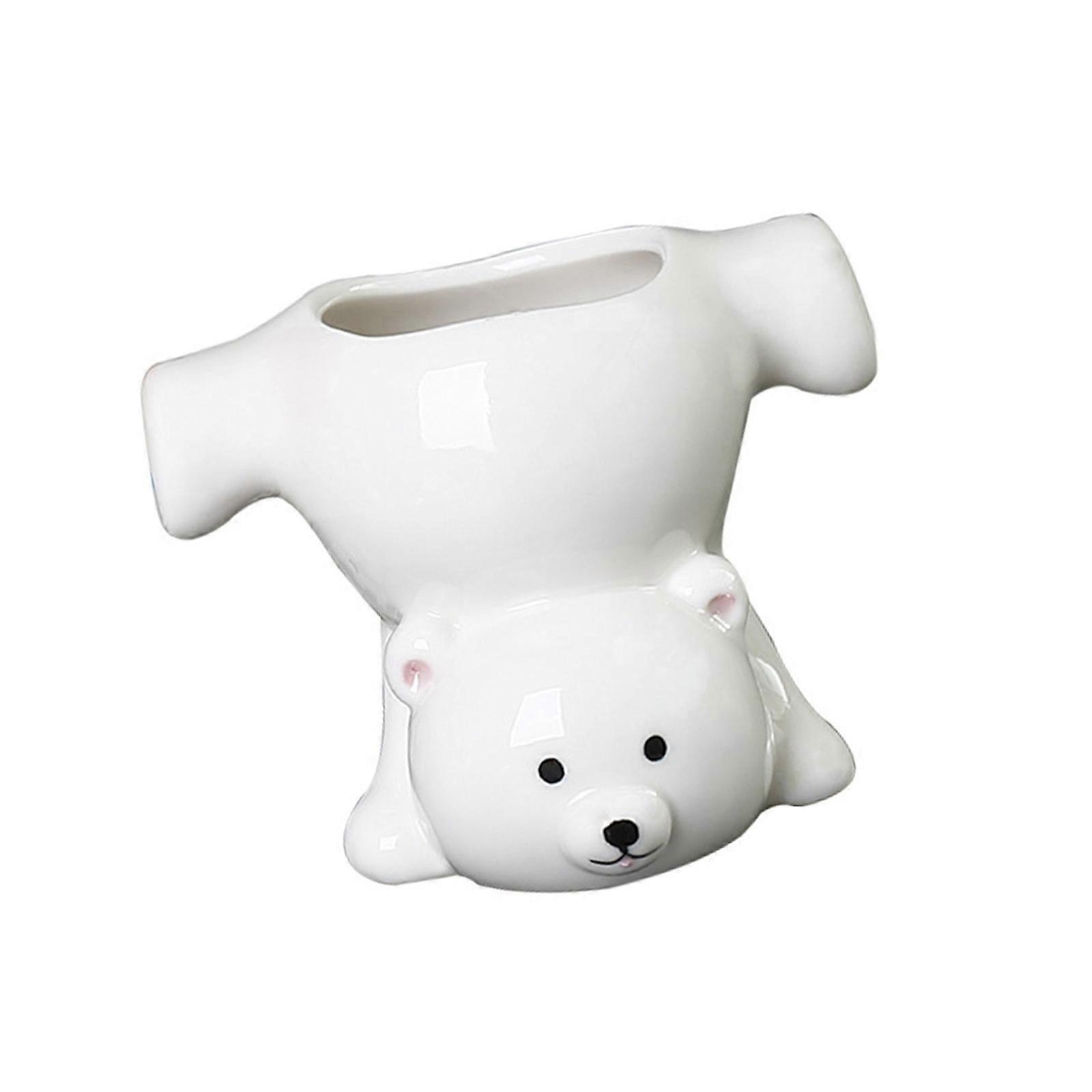 Novelty Upside Down Bear Planter Handcrafted Lovely Bear Shape Plant Pot For Plant And Office Accessories White