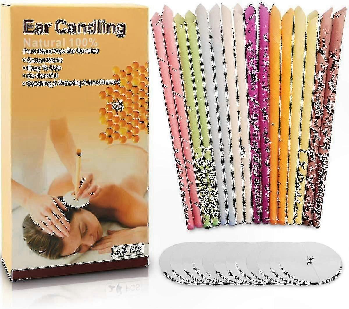 24-Pack Pure Beeswax Ear Candling Cones, Natural Non-Toxic Hollow Candle Set for Wellness