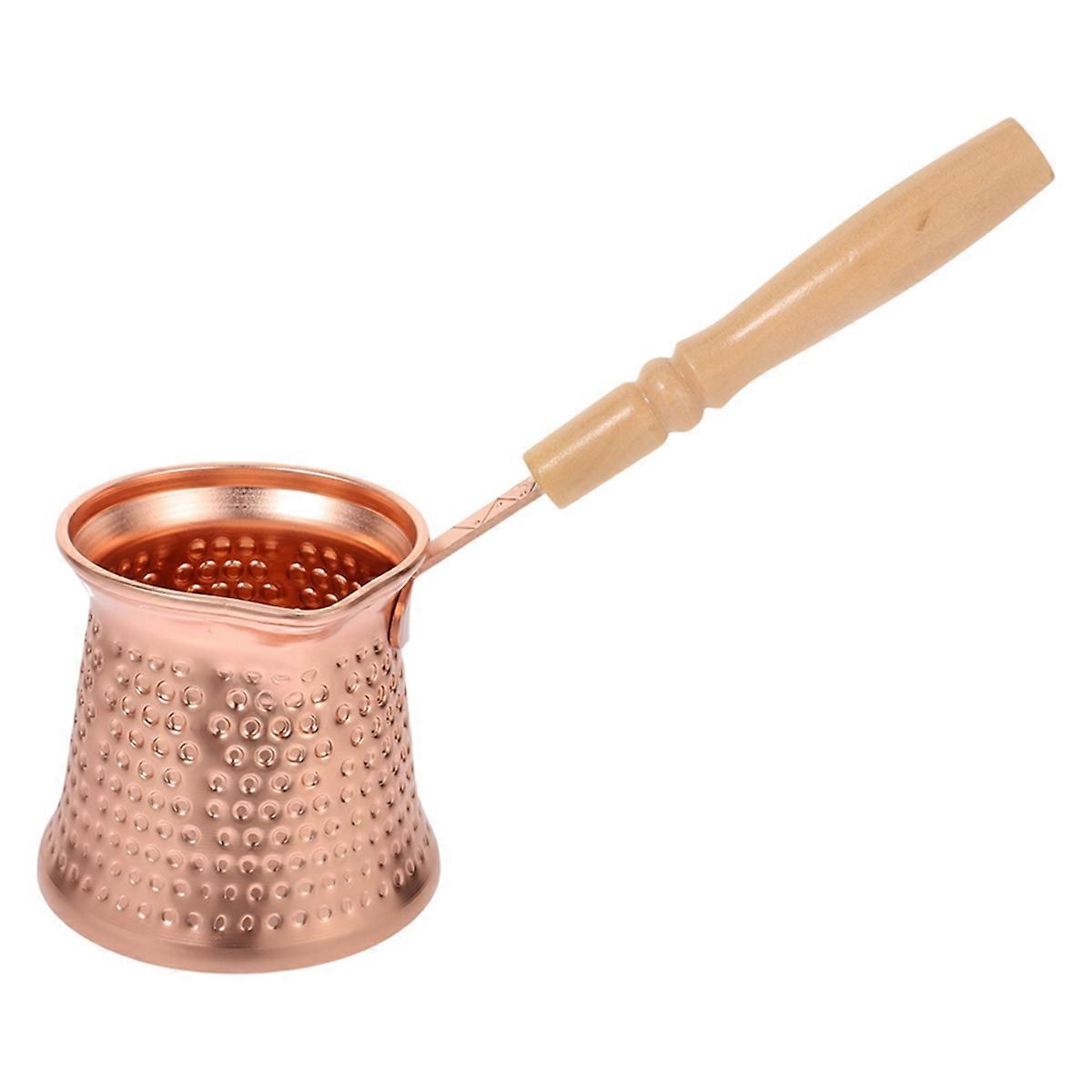 Turkish Coffee Pot Milk Jug with Wooden Handle Kitchen Coffee Heating Pot Copper Aluminium, 350ml for Home Espresso